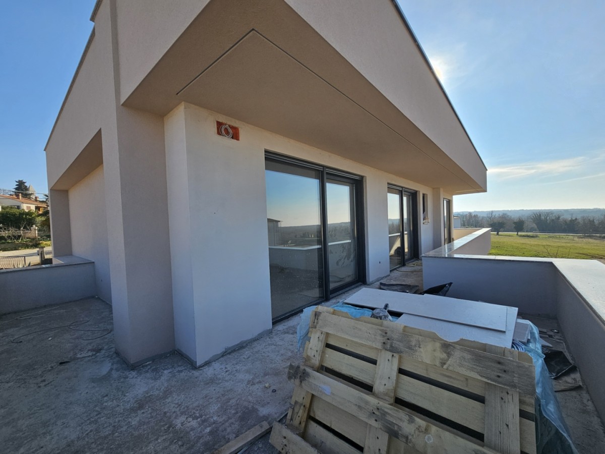 Poreč - 15 km - pogled na more - U srcu predivne istarske prirode, nedaleko od Poreča, smjestila se ova luksuzna vila koja spaja eleganciju, udobnost i vrhunski dizajn. Svojim prostranim interijerom i besprijekorno uređenom okućnicom pruža savršen dom za one koji traže sklad između modernog načina života i mira koji nudi mediteransko okruženje.