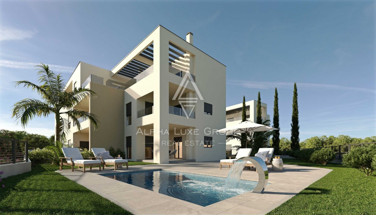 Smješten u mirnom stambenom dijelu Poreča, ovaj novoizgrađeni stan u prizemlju nudi 97 m² suvremenog životnog prostora i privatni vrt od 150 m². Okružen obiteljskim kućama i udaljen svega nekoliko minuta od poznate plaže Materada, stan je pažljivo osmišljen kako bi pružio udobnost i moderan obalni način života.