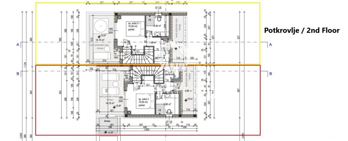U potkrovlju se nalazi master bedroom, garderoba, kupaonica te dvije terase, jedna sa priključkom za Jacuzzi.