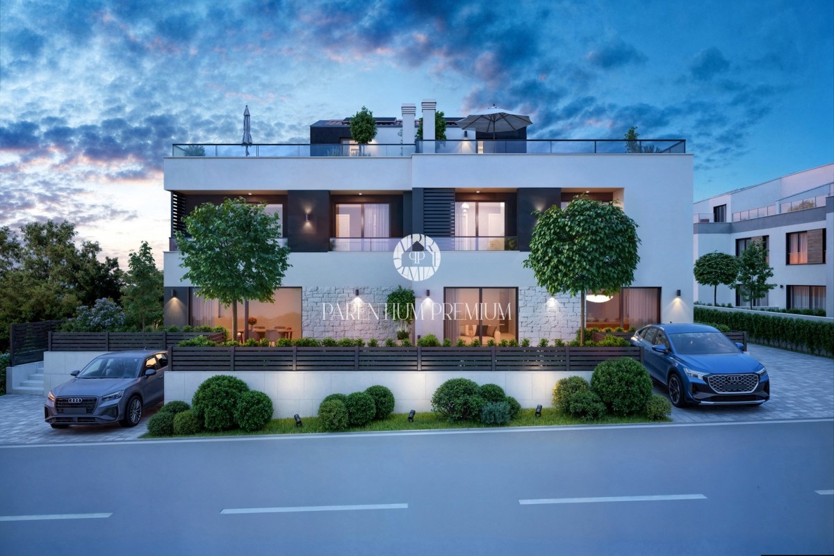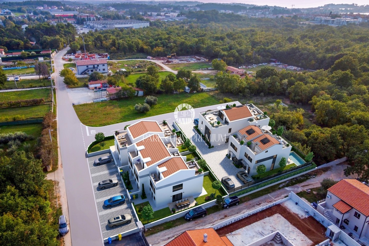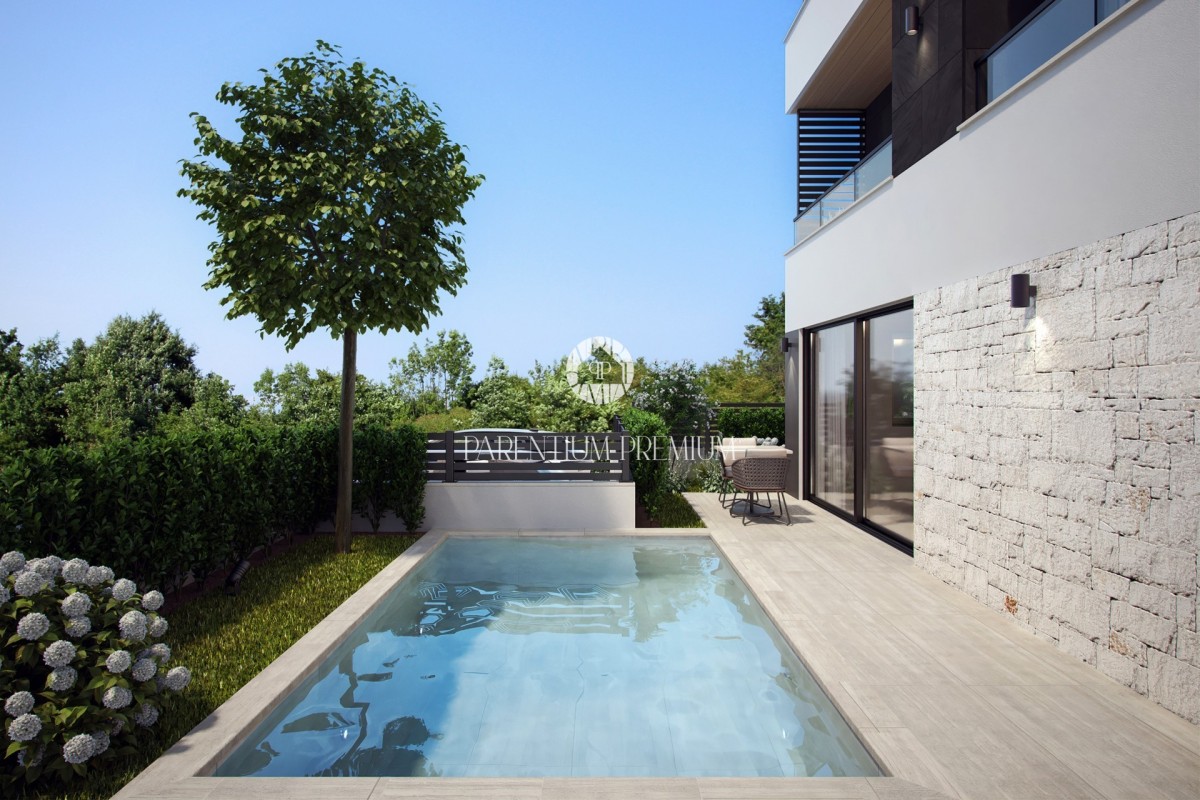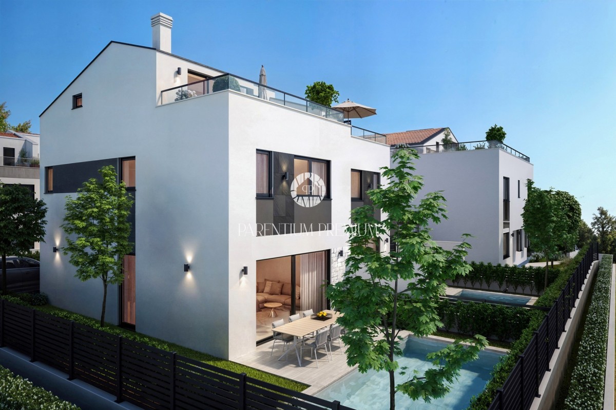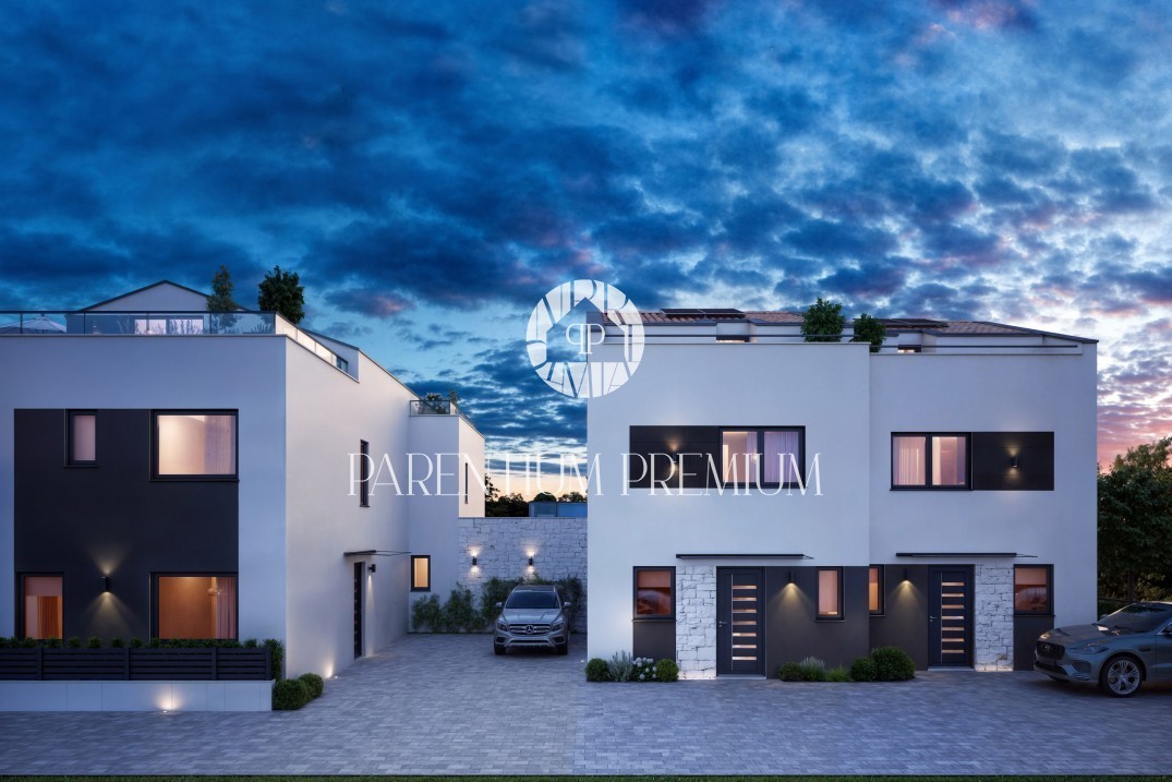 Prodaje se moderna dvojna kuća na traženoj lokaciji sa bazenom u Poreču nadomak svih sadržaja potrebnih za život.