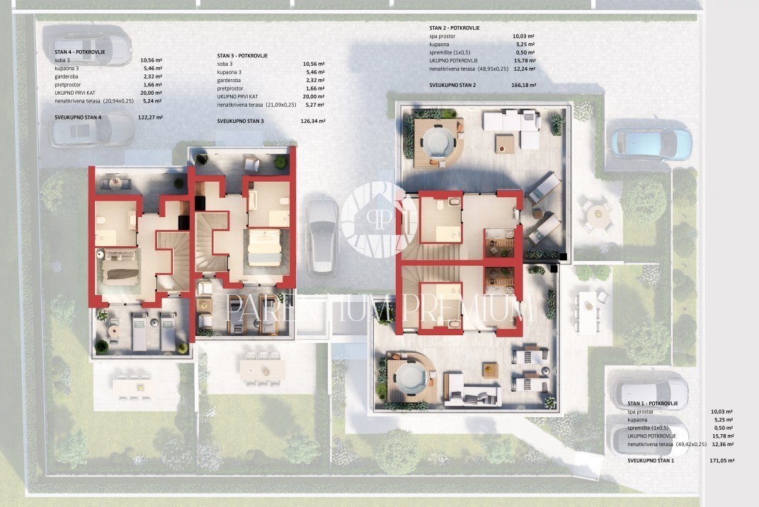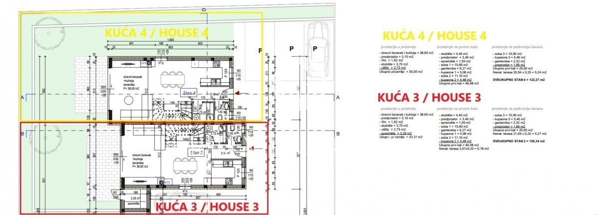 Kuća broj 4 je ukupne površine 126.34 m2 i proteže se na tri etaže.