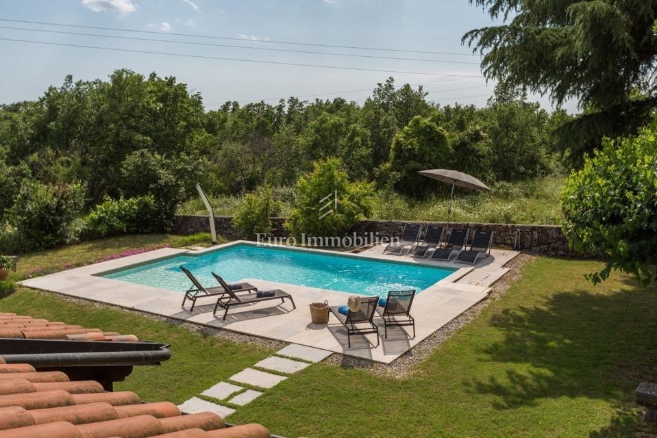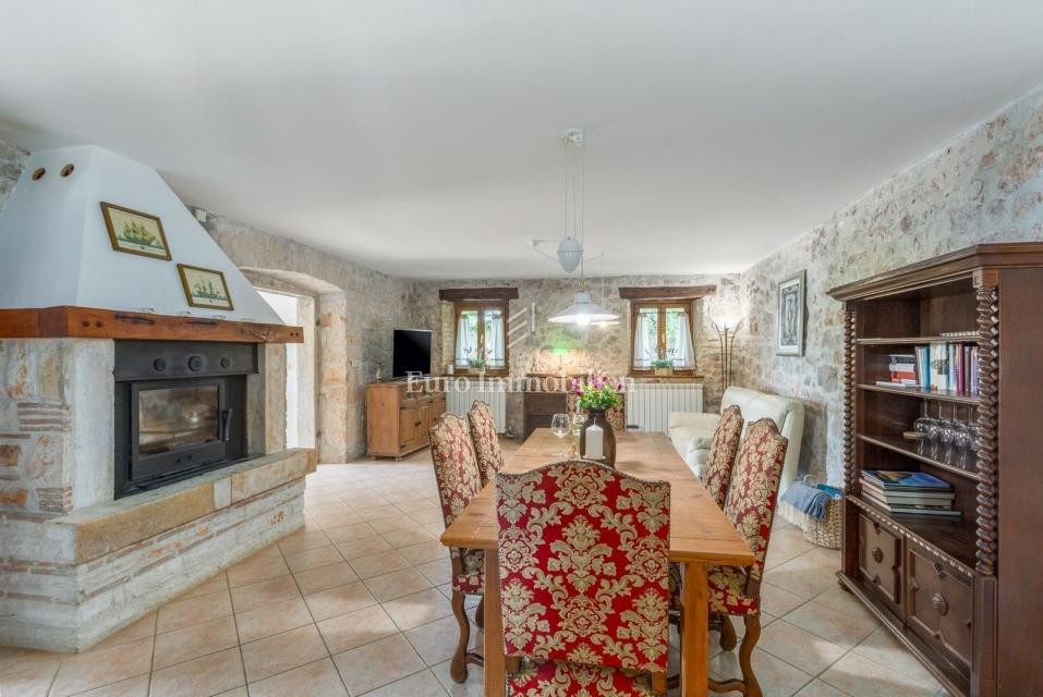 Šarmantna kamena vila smjestila se na rubu građevinske zone jednog malog istarskog autohtonog mjesta nedaleko od Poreča (12 km). Sagrađena je prije 1968. godine, no kompletno obnovljena 2009. godine. Okružena je prirodom, te ima prostranu okućnicu od 1430 m2. Na ulazu u dvorište ju krasi stoljetni hrast. Kuća se sastoji od dvije etaže. U prizemlju je smješten ulazni hodnik, kupatilo, dnevni boravak, blagovaona, spavaća soba i kuhinja. Sve prostorije u prizemlju imaju komunikaciju sa vrtom, te kuhinja ima i izlaz na ljetnu kuhinju koja se nalazi u bočnom dijelu kuće. U dnevnom boravku se nalazi kamin, kao i u ljetnoj kuhinji. Na katu su smještene još dvije spavaće sobe i jedna kupaona, te prostrana natrkivena terasa. U vrtu se nalazi bazen od 32 m2 sa dodatkom za djecu (plitka voda), tuš, vrtna kućica, ljetna kuhinja sa prostorom za druženje, parkirna mjesta, te prostrana zelena površina. Cijela okućnica je ograđena. Grijanje je regulirano centralnim sistemom na plin i kaminom, dok se za hlađenje koriste klime. Postoji i centralni bojler za toplu vodu. Fasada je obnovljena prije 3 godine. Kuća je idealna za turistički najam, no obzirom da ima centralni sustav grijanja, pogodna je i za cijelogodišnje življenje. Nekretnina je dostupna odmah!