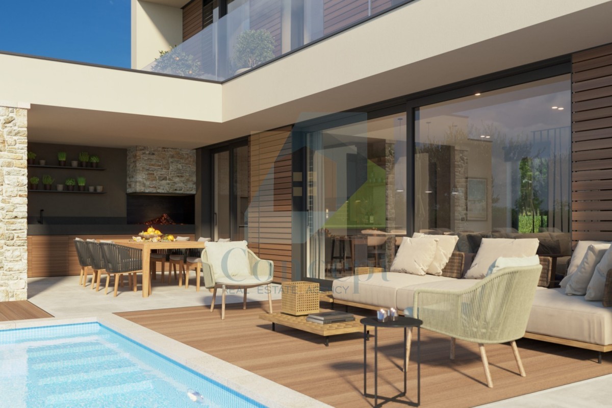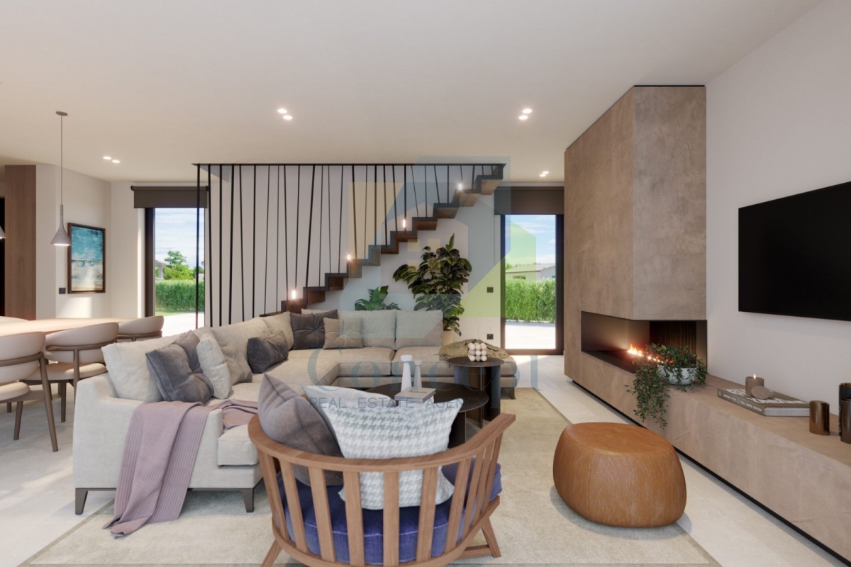 Prodaje se dvojna kuća smještena u mirnom naselju u okolici Poreča, udaljenom 10 km od mora i 12 km od grada. Kuća će imati oko 208 m², raspoređenih na dvije etaže.