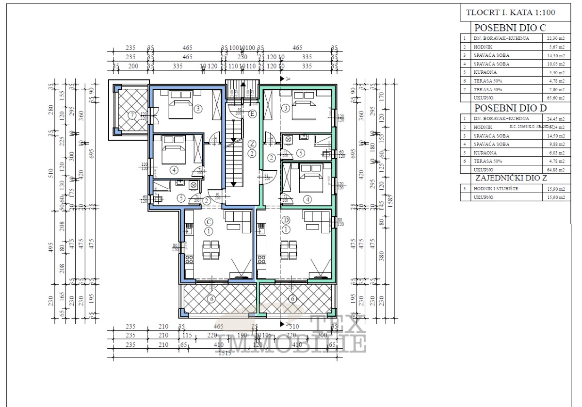 Površina: 65,60 m2 neto + 3,78 m2 spremište