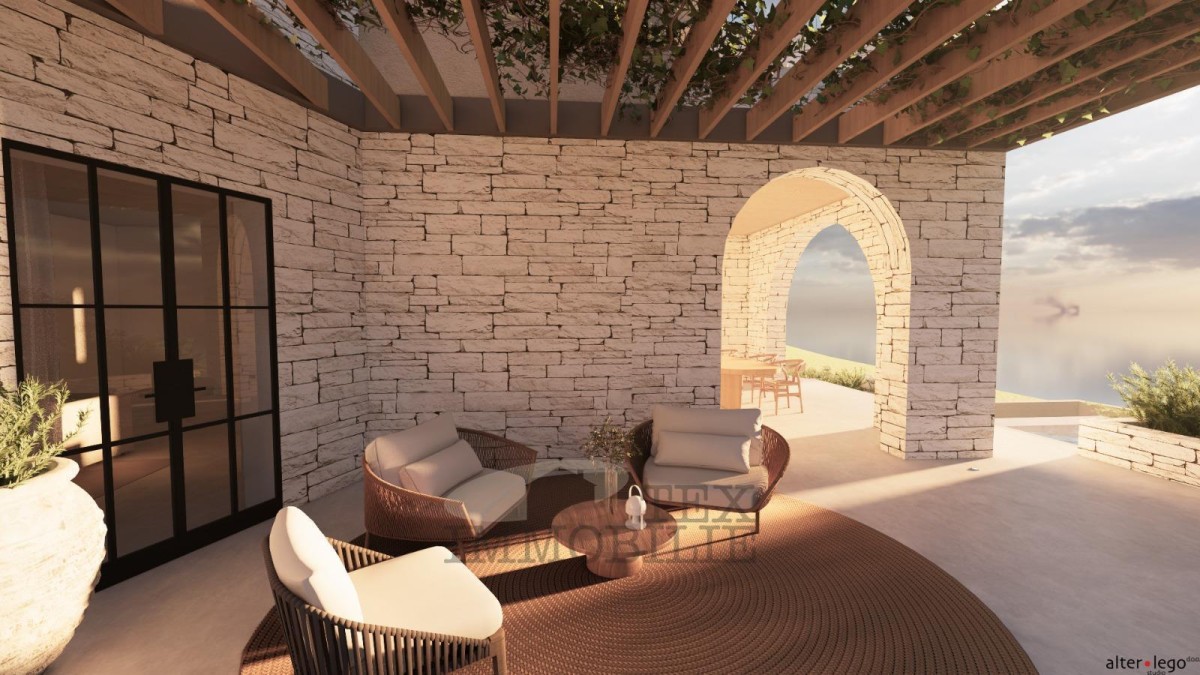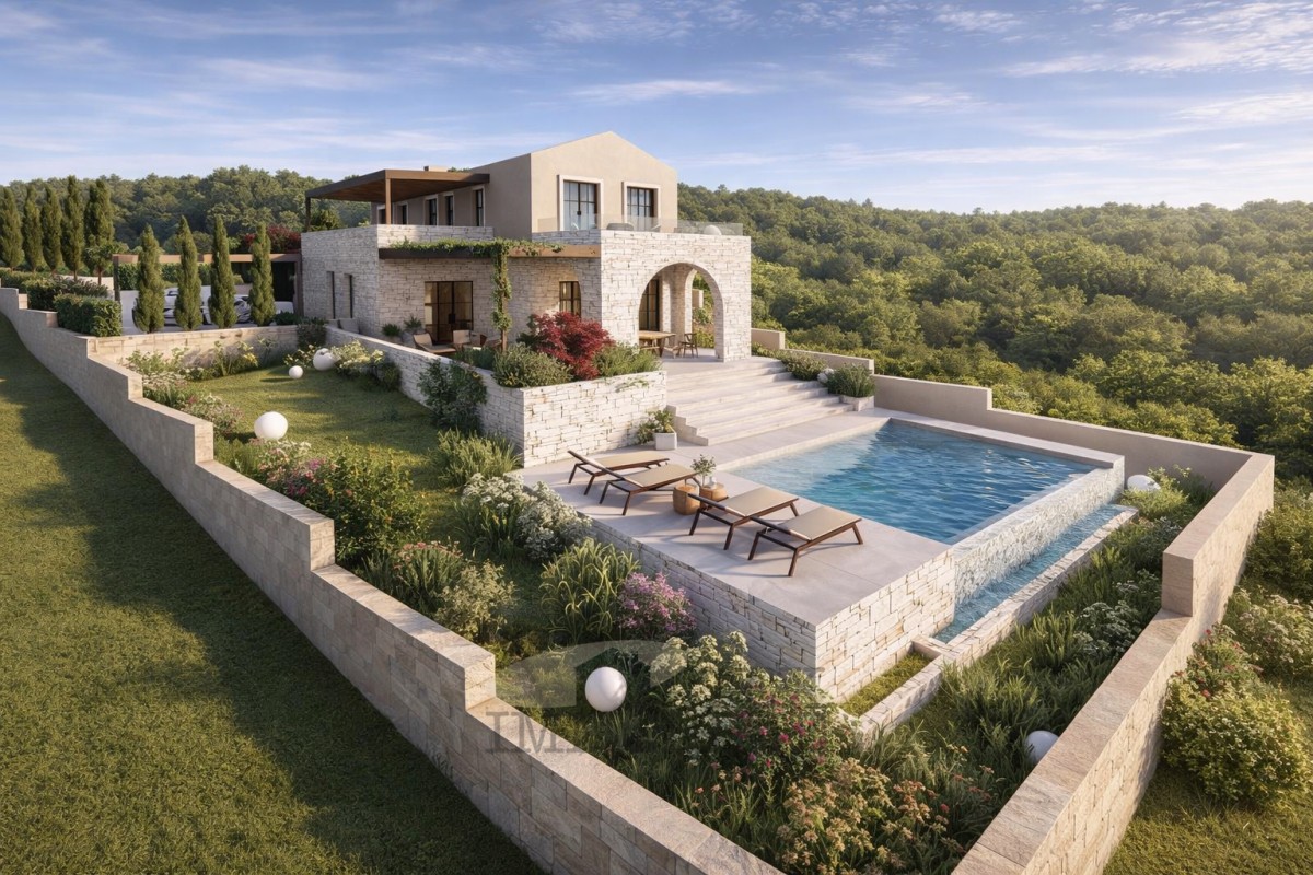 Prodaje se zemljište s građevinskom dozvolom za izgradnju vile neto površine 231 m² s bazenom.