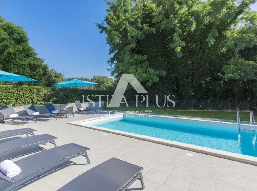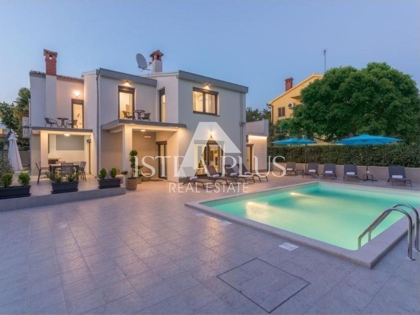Villa s bazenom ukupne stambene površine 230 m2, 400m do mora i 1km od centra Poreča. Nalazi se na zemljištu površine 693 m2 te se prostire na 2 etaže.