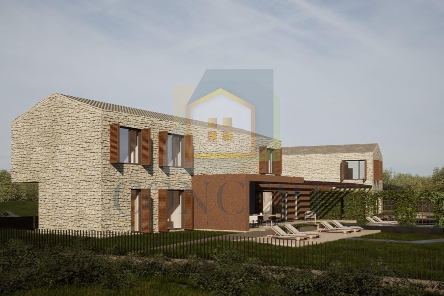 Prodaje se projekt za dvije ekskluzivne vile na tri impresivne parcele u slikovitom ruralnom naselju. Parcele imaju površinu od 1.608 m², 1.752 m² i 1.812 m². Ove jedinstvene nekretnine nalaze se na prekrasnoj lokaciji, okružene tipičnim istarskim krajolikom brežuljaka, vinograda i idilične prirodne kulise.
