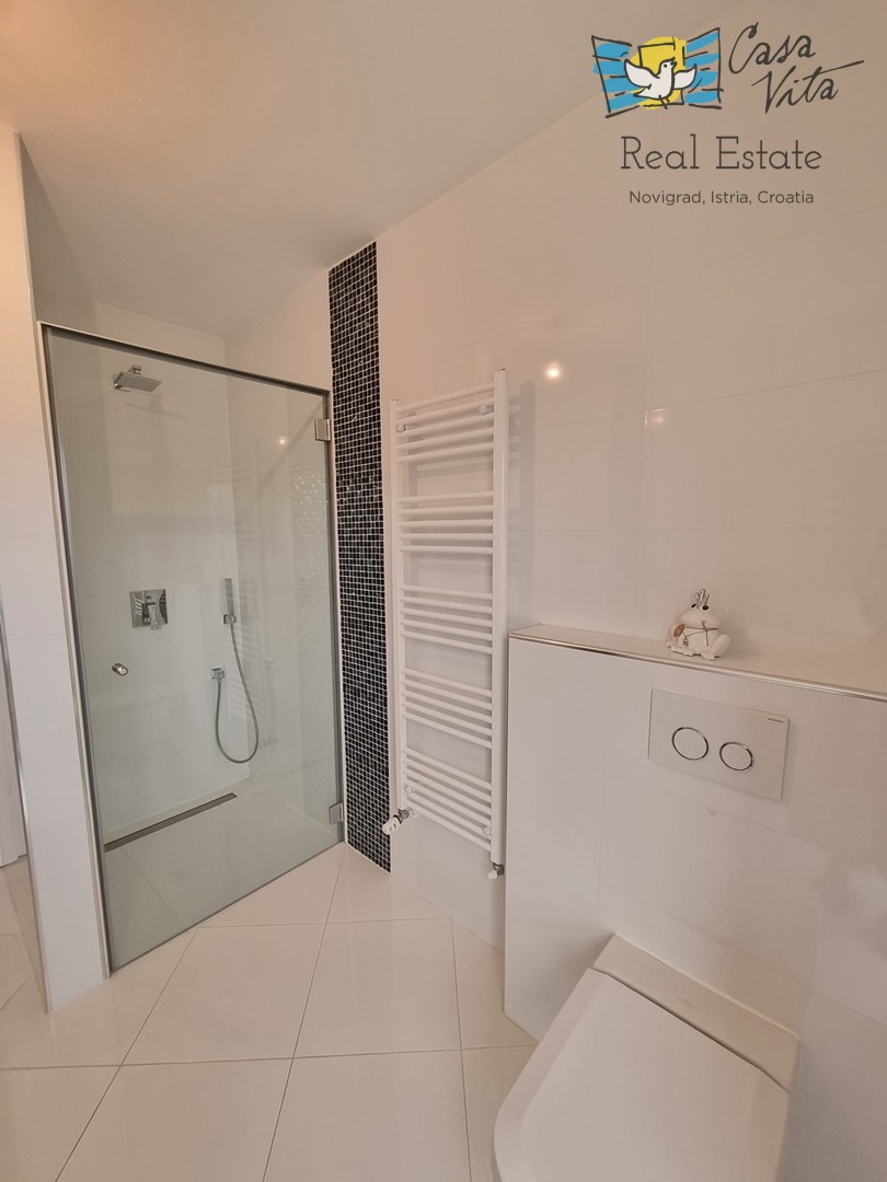 Prodaje se luksuzan stan u mirnoj ulici u centru Poreča, samo 150 metara od mora. Nalazi se na prvom katu zgrade s 5 stambenih jedinica, podzemnom garažom i liftom.