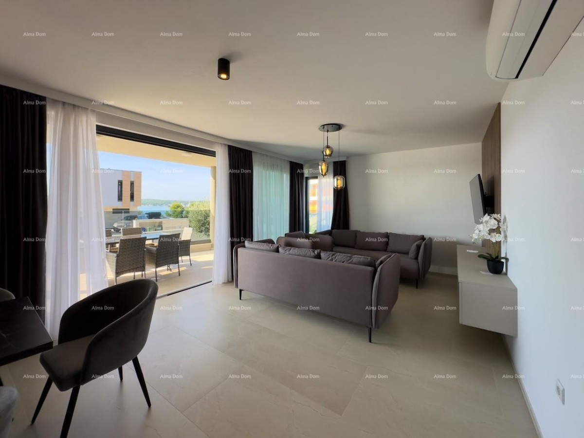 Prodajemo predivan stan u Medulinu sa garažom i bazenom. Stan se sastoji od velikog dnevnog boravka koji ima pogled na more, lijepe velike kuhinje. 3 spavače sobe svaka sa svojim kupatilom. Stanu pripada bazen i parkirno mjesto u garaži.