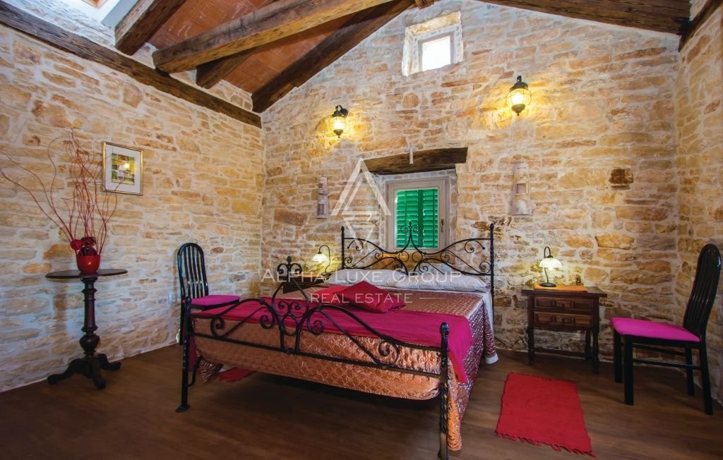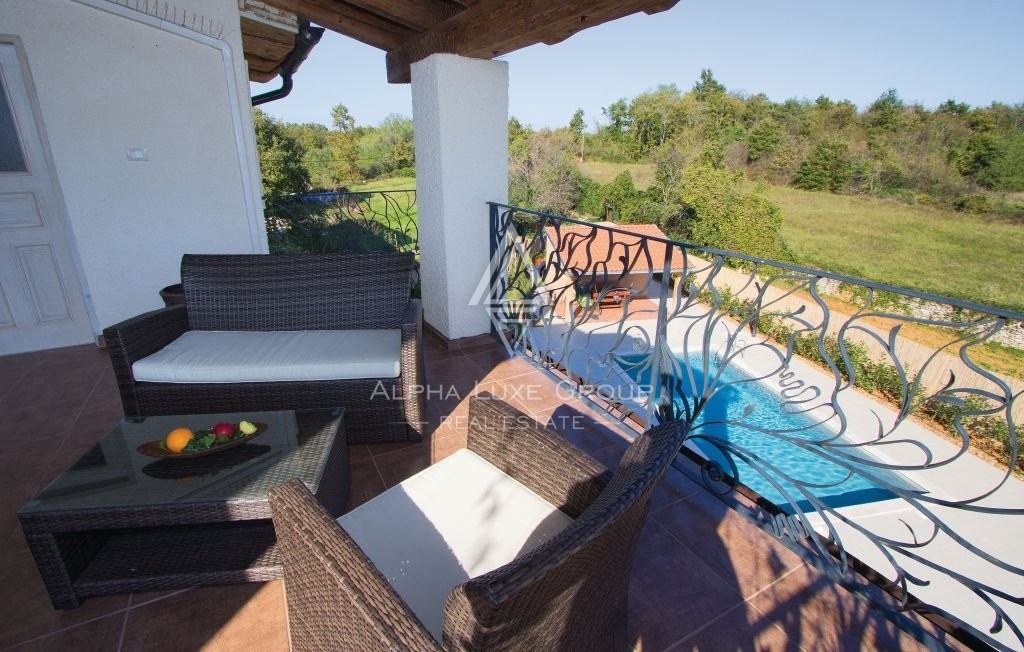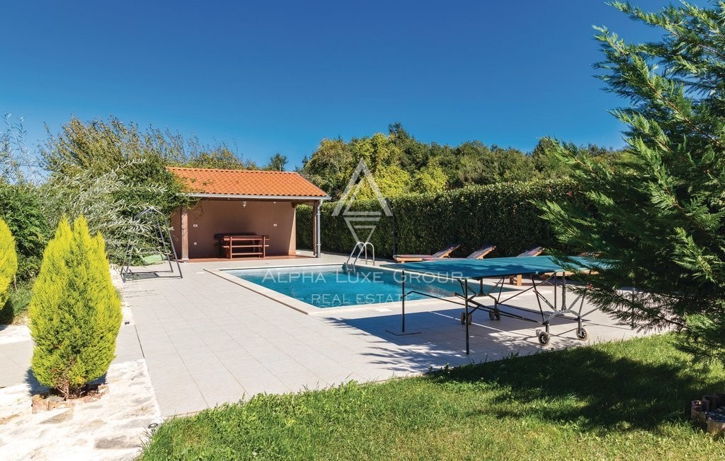 Ova romantična istarska kamena kuća ima još jednu prednost - prostrani i luksuzni bazen osvojit će vas na prvi pogled. Bazen je savršeno uklopljen u prekrasan vrt, stvarajući oazu mira i opuštanja za osvježenje u vrućim ljetnim danima.