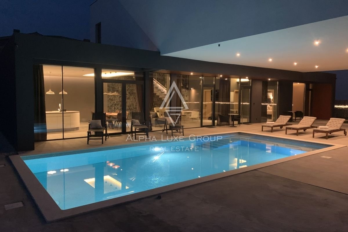 Ova potpuno nova kuća udaljena je samo 600 metara od najbliže plaže i neobičnog je arhitektonskog stila. Zgrada Grande Arche u Parizu bila je inspiracija za ovu modernu divu. Zasigurno će vas osvojiti svojom sposobnošću uređenja interijera i eksterijera zbog veličanstvenog pogleda na more i otoke Cres i Lošinj.