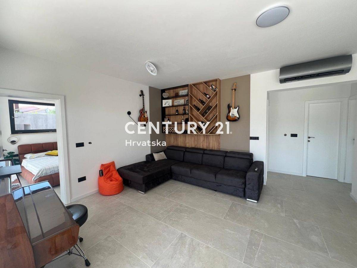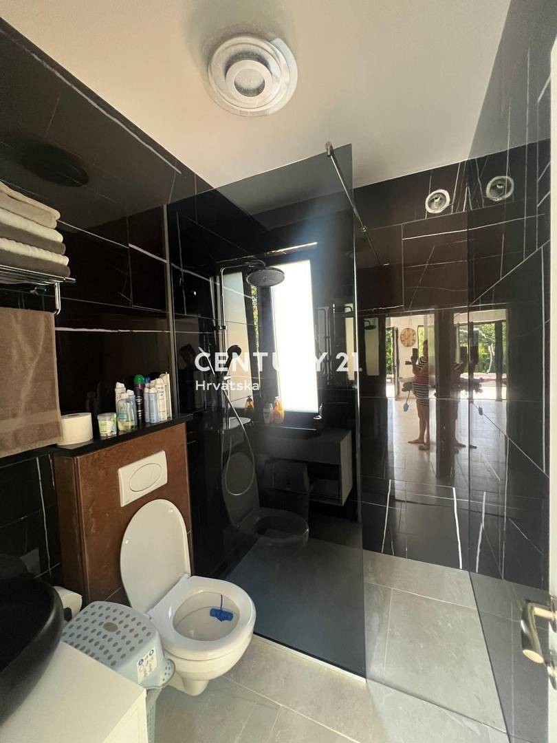 Kuća je potpuno opremljena i namještena, građena vrhunskim materijalima, termo fasada debljine 12 cm, vrhunska keramika i sanitarije, aluminijska stolarija sa automatskim roletama i komarnicima.