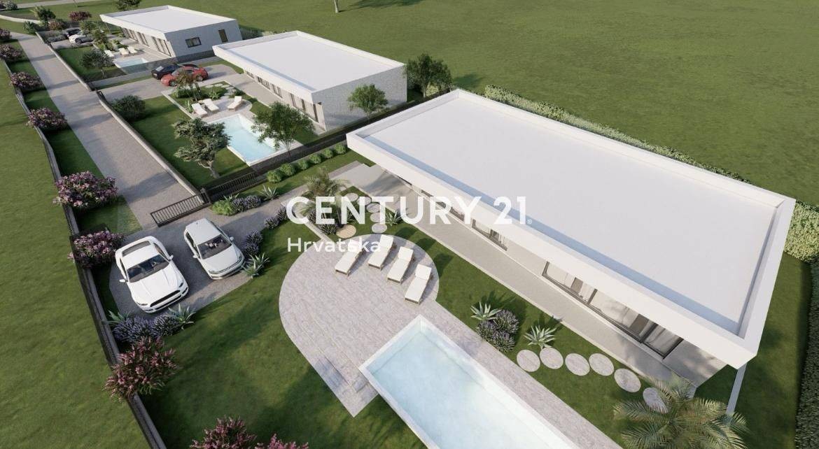 Prodajemo novu prizemnu kuću koja je u roh-bau fazi a prodaje se kompletno dovršena kao na fotografijama, površine 198 m2, koja se sastoji od dvije stambene jedinice.
