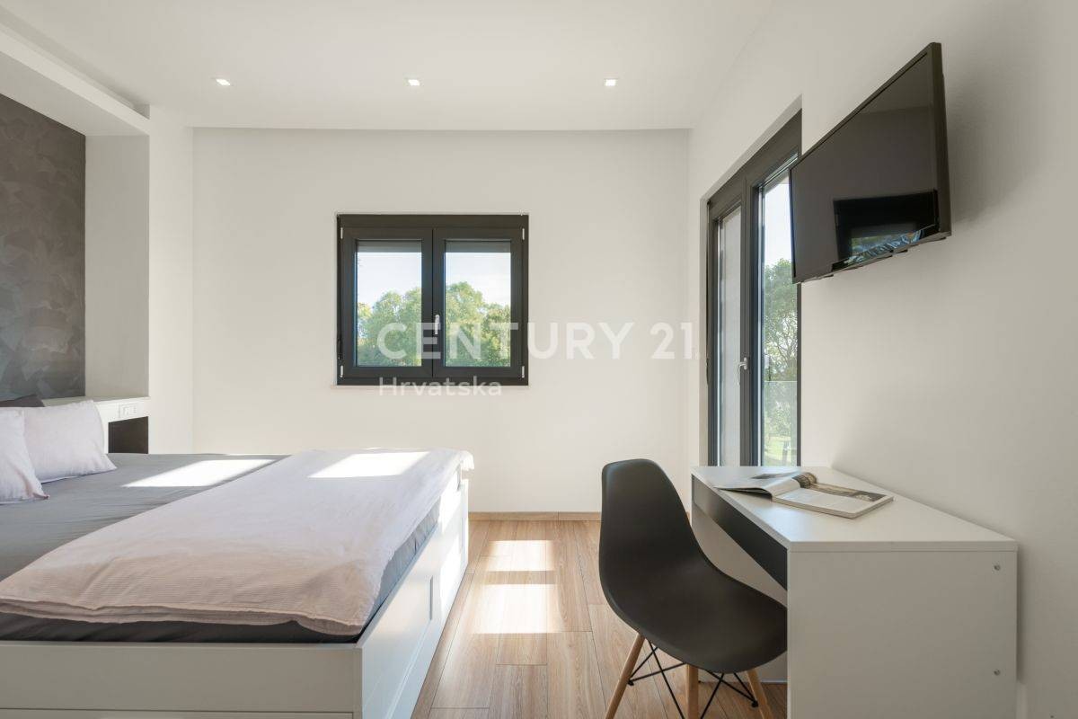 Kuća je građena 2020. godine i od onda se vlasnici uspješno bave turističkim najmom. Sve su prostorije klimatizirane, a u dnevnom boravku nalazi se kamin za grijanje i ugođaj u zmiskim danima. Bazen je površine 32 m2. Uz bazen nalazi se vanjska kuhinja i tuš. Kuća se nalazi na osami i ima potpunu privatnost. Vlasništvo je uredno.