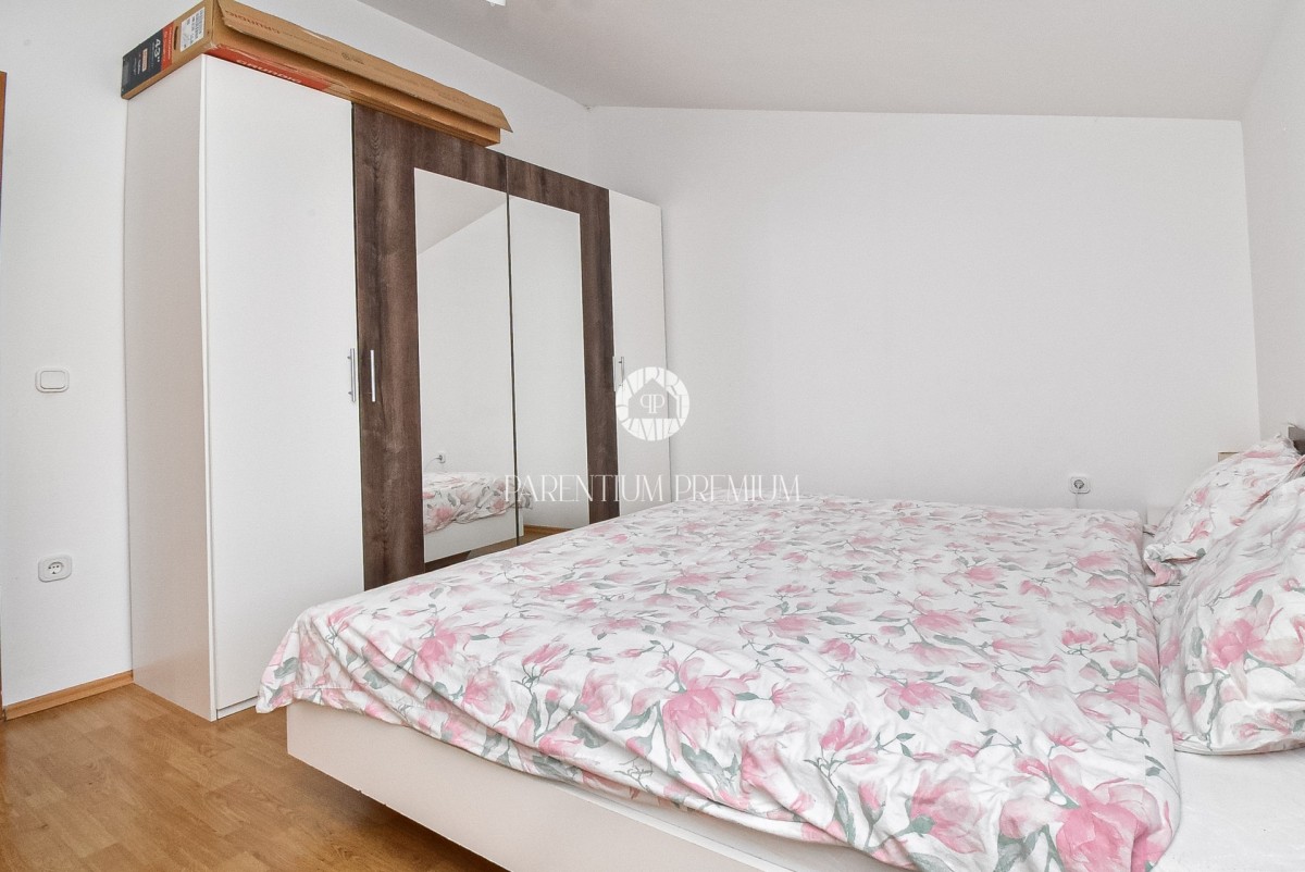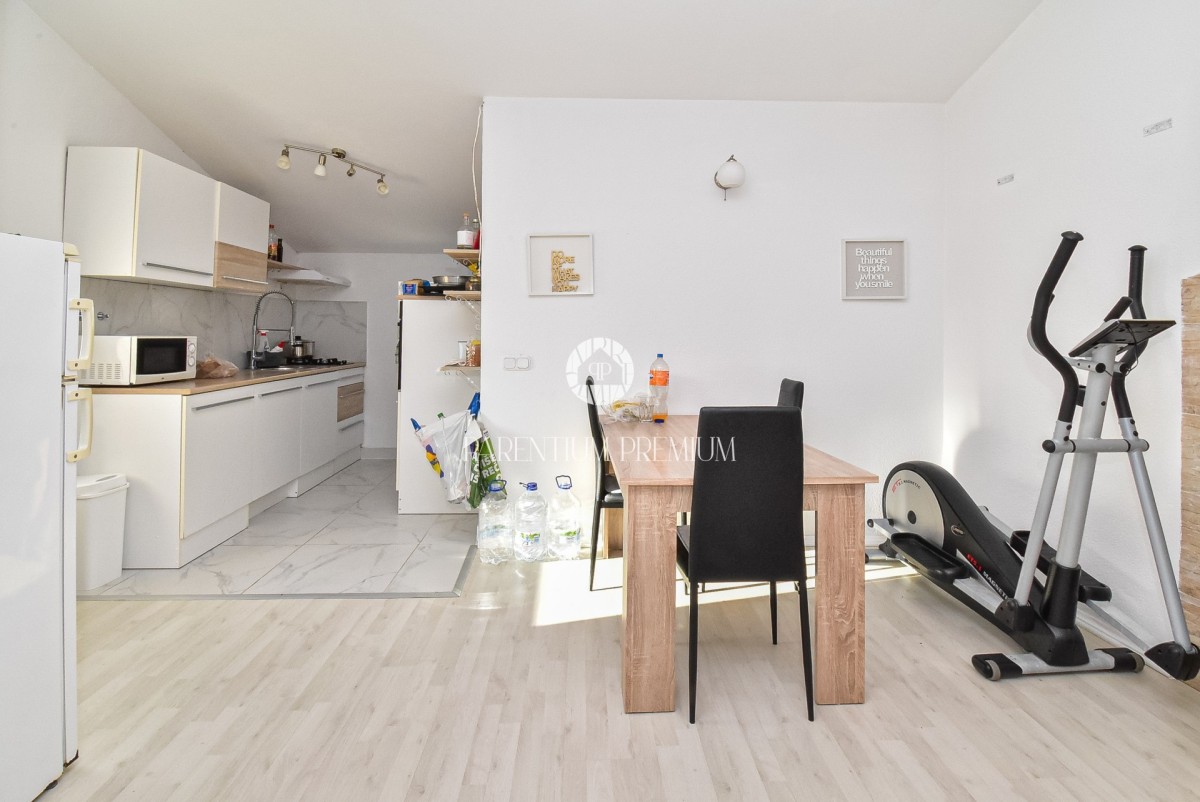 Prodaje se prostran stan na 1. katu s vlastitim vrtom i otvorenom konobom, savršenom za ugodna druženja tijekom cijele godine.