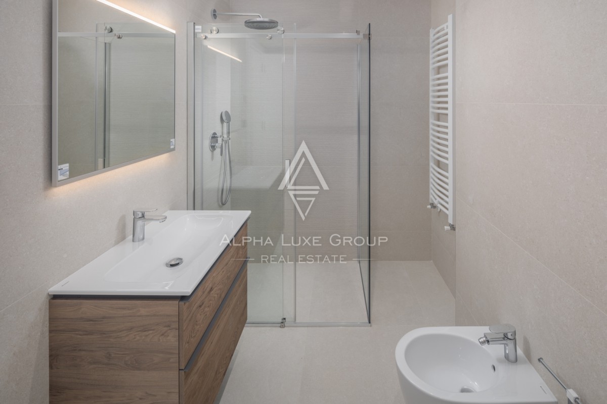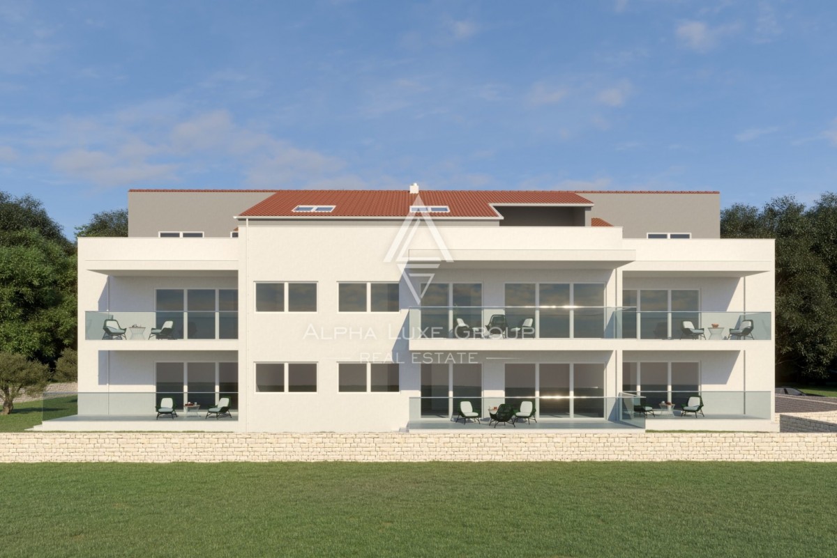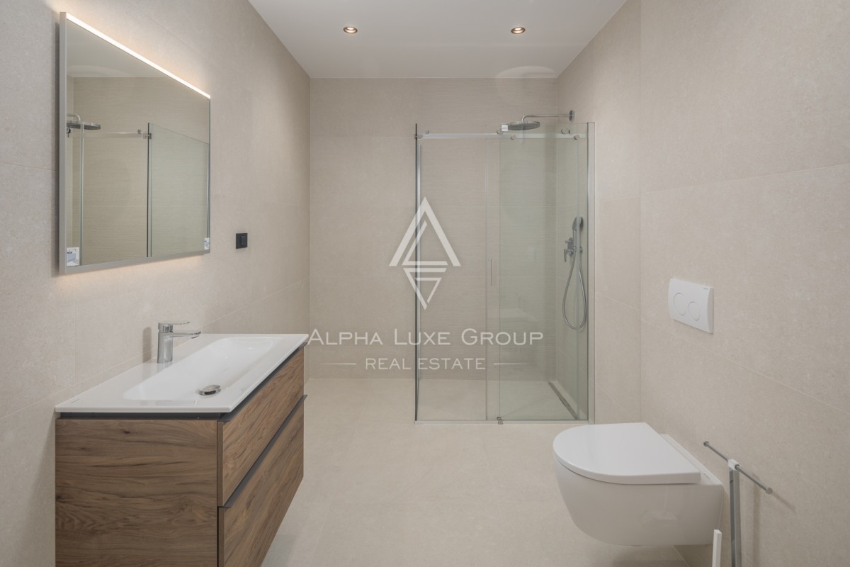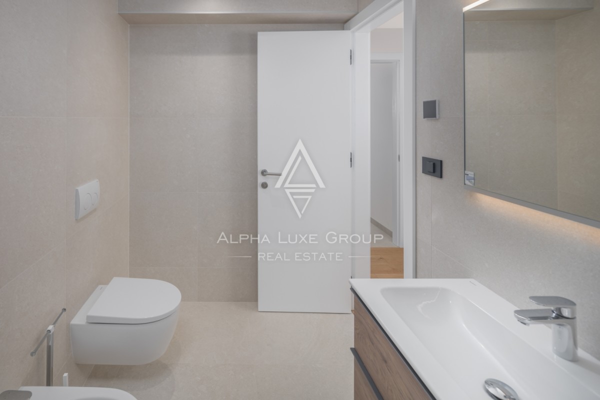 Stan se sastoji od četiri spavaće sobe, tri moderne kupaonice, prostrane dnevne zone te više terasa i balkona. Zahvaljujući zapadnoj orijentaciji, stan obiluje prirodnim svjetlom tijekom cijelog dana. Balkon nudi predivan pogled na more, naglašavajući luksuzan i opuštajući karakter prostora.