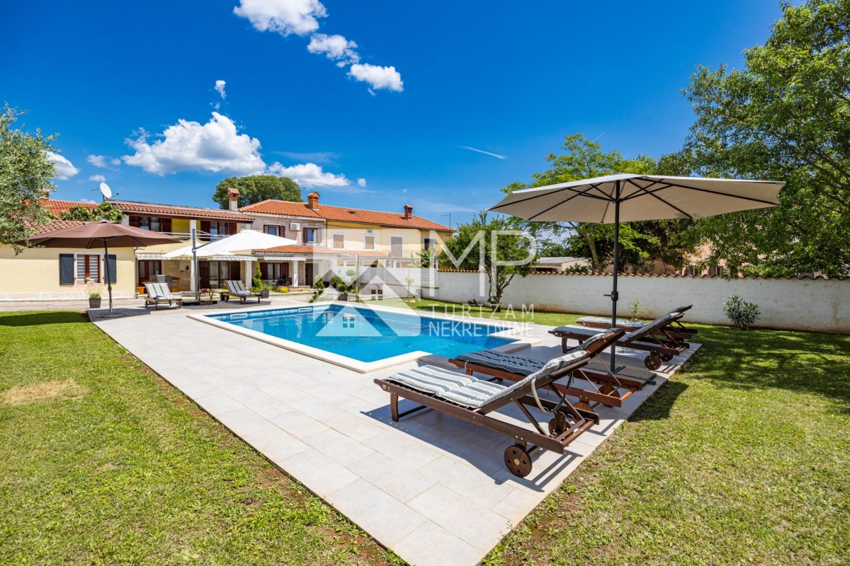Smještena u mirnom i slikovitom istarskom naselju Hreljići, ova kuća za odmor savršeno spaja udobnost s lakoćom pristupa najpoznatijim destinacijama Istre. Uređen dvorišni prostor, hladovina ispod maslina, roštilj, veliki bazen i opremljena terasa s roštiljem omogućuju potpuno uživanje u boravku tijekom toplih ljetnih dana. Položaj kuće također je savršen za istraživanje Istre – za samo 10 minuta vožnje možete stići do prekrasnih plaža u Raklju, Krnici, Blažu i Dugoj Uvali.