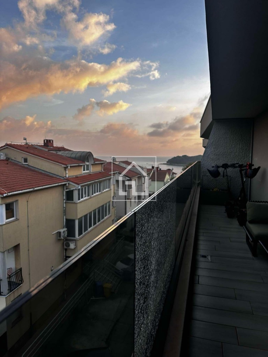 a sastoji se od ulaznog hodnika, dnevnog boravka s kuhinjom i blagovaonom, otvorenog tipa, 4 spavaće sobe, 2 kupaonice, te vrlo prostrane terase (s koje se pruža pogled na more. Stan se nalazi na na 4. katu zgrade (s liftom), u potpunosti je uređen i luksuzno namješten te se kao takav i prodaje. Oprema u stanu je nova i kompletan namještaj je rađen po mjeri.