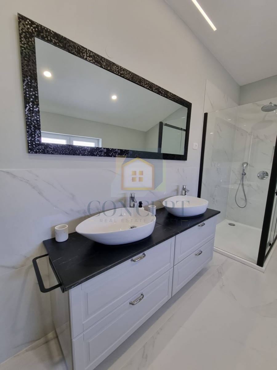 Ukupno kuća ima četiri spavaće sobe i pet kupaonica. Sve prostorije su klimatizirane, a grijanje je riješeno podnim grijanjem te dizalicom topline za grijanje sanitarne vode i bazena. Prozori su opremljeni troslojnim staklom (četiri godišnja doba), a sve vanjske površine imaju hidroizolaciju.