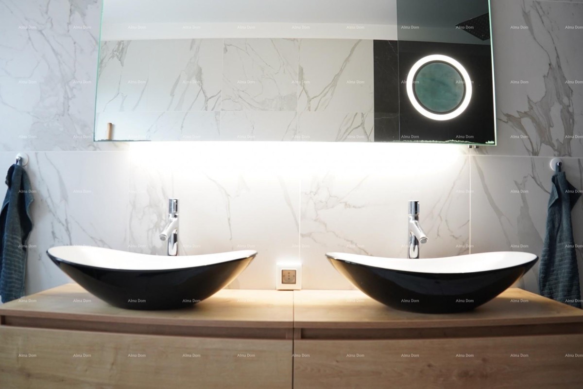 Prodaje se stan na prvom katu kuće kojemu pripada dvorište i 2 parkinga. Stan se sastoji od kuhinje sa blagovaonicom I dnevnim boravkom, terase, dvije spavaće sobe. Kuhinja je opremljena vrhunskim uređajima marke Siemens i radnom pločom od inoxa izrađenoj po mjeri. Stan je svetao I prozračan, pogled na zeleni park I borovu šumu