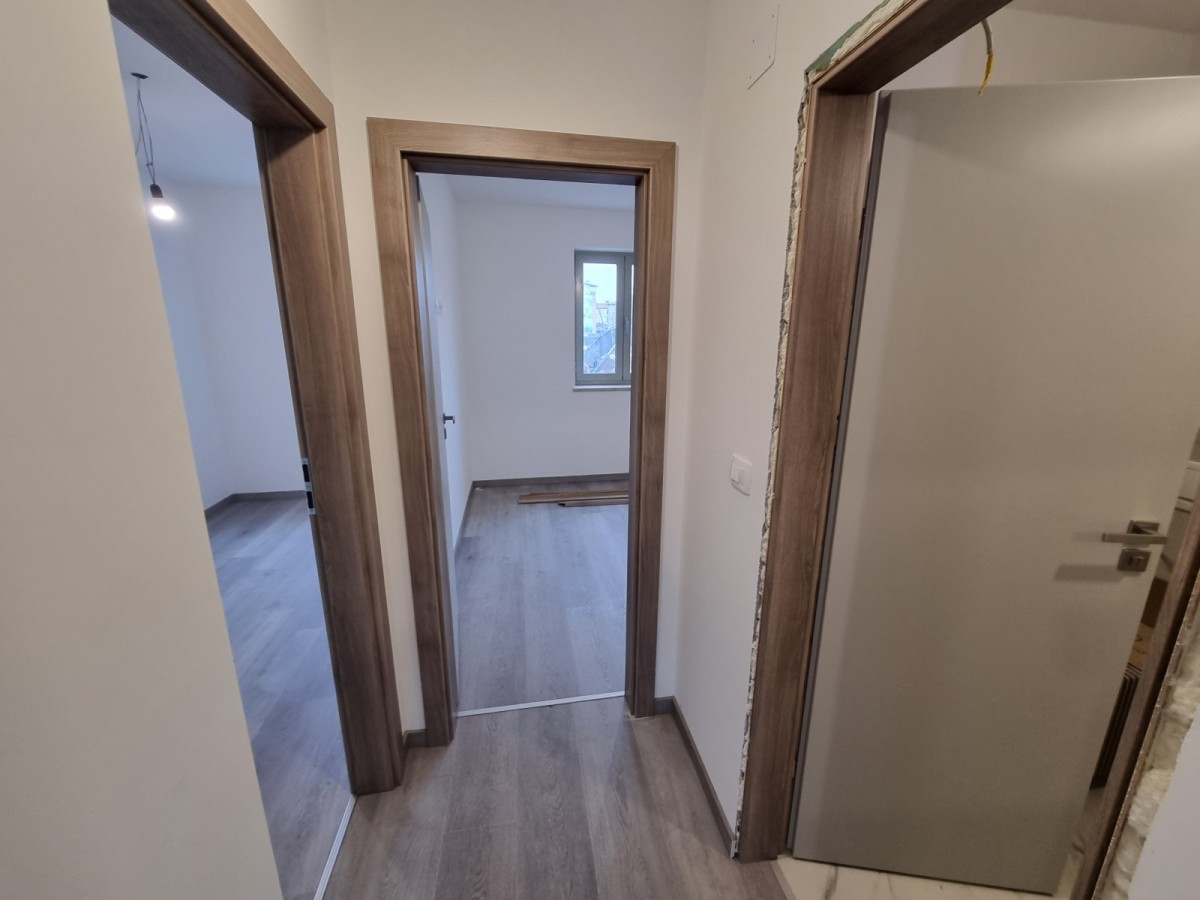 U ponudi je stan u srcu Umaga, smješten u potpuno renoviranoj zgradi koja broji ukupno 4 stana. Prostire se na 59 kvadratnih metara i obuhvaća kupaonicu, dvije spavaće sobe te kuhinju koja se nadovezuje na dnevni boravak. Velike staklene stijene u dnevnom boravku vode do prekrasne natkrivene terase.