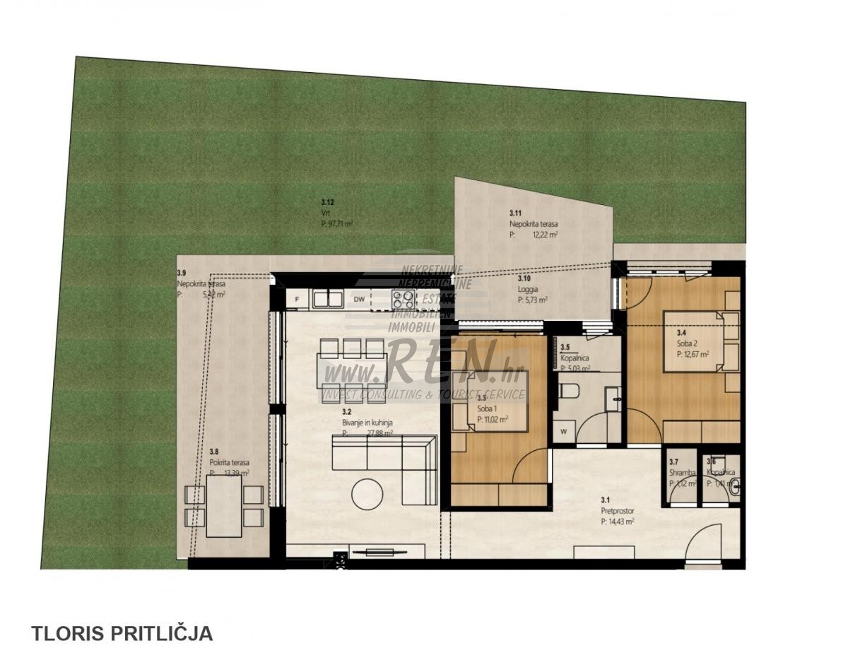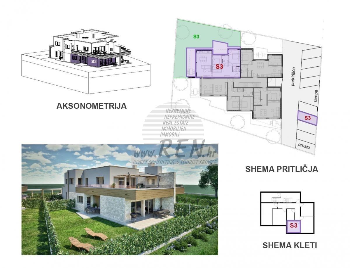 - Svaki stan ima zasebno podrumsko spremište i parkirno mjesto.