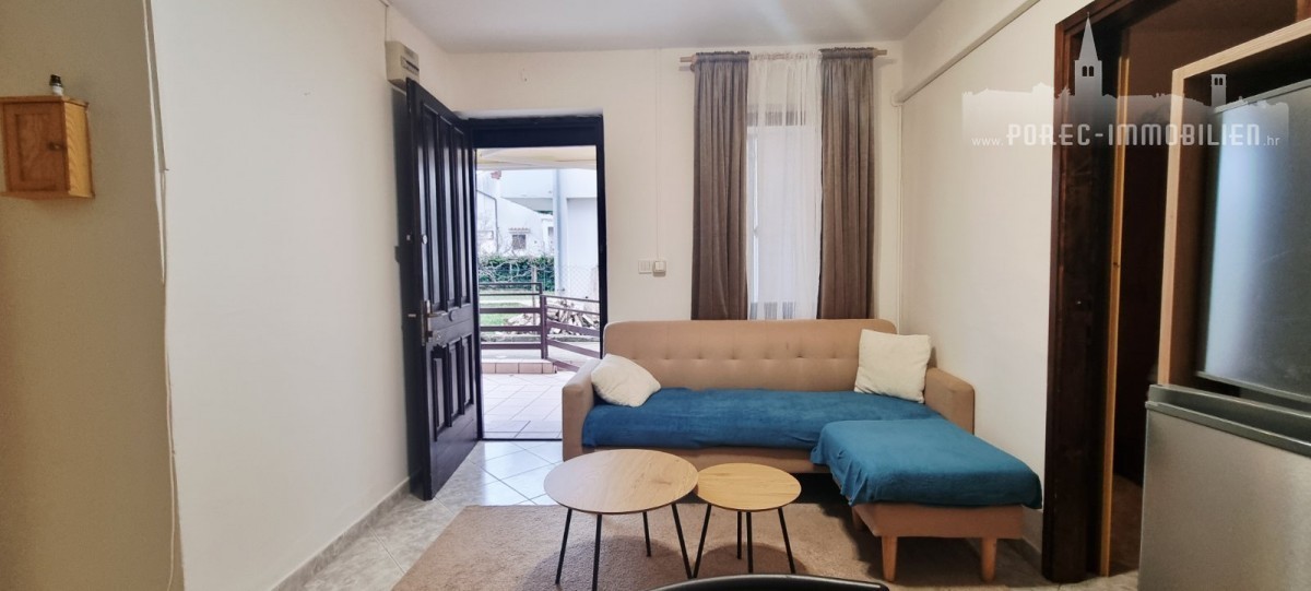 U malom ribarskom mjestu nedaleko Poreča, prodajemo stan u prizemlju, površine 42 m2.