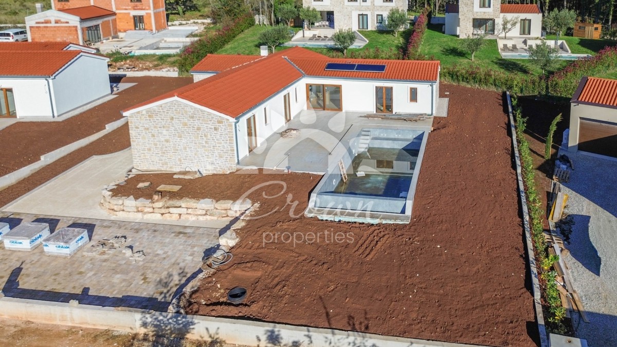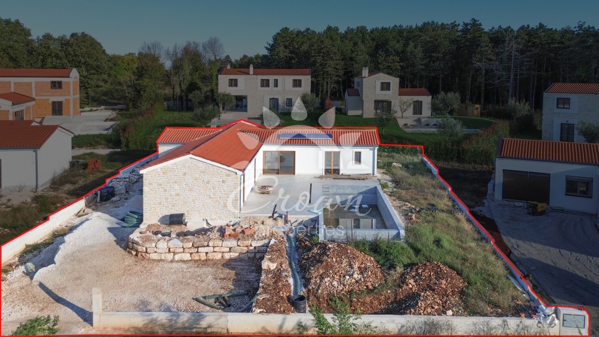 Ova atraktivna prizemnica, obložena kamenom u istarskom stilu, sa solarnim sustavom, privatnim bazenom, prostranim sobama i velikim terasama, predstavlja savršen spoj tradicije i suvremenog komfora.