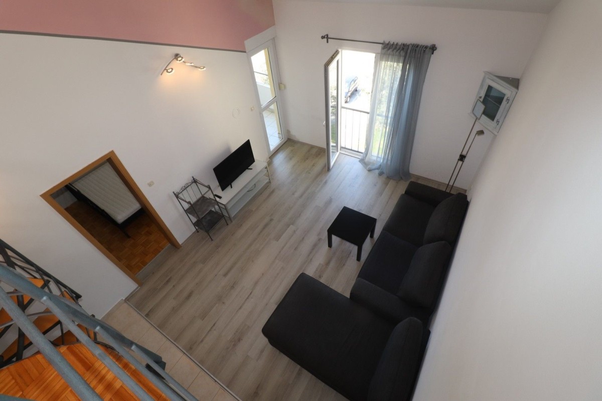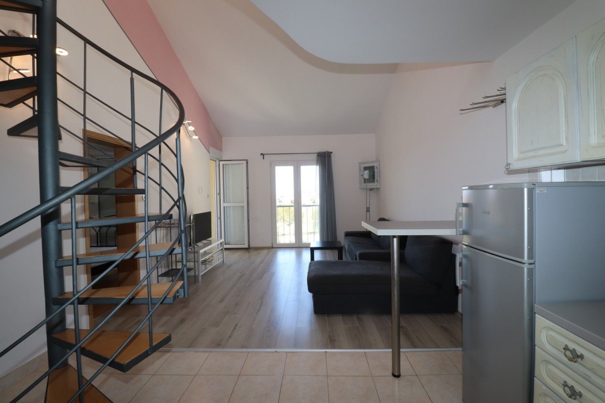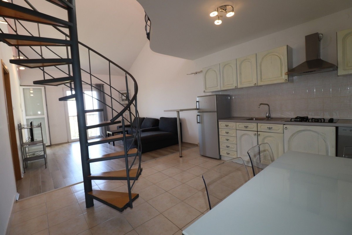 STAN U UMAGU NA ODLIČNOJ LOKACIJI!!! Dvoetažni stan se nalazi na zadnjem (3. katu) zgrade, na lokaciji koja na 200-300 metara ima sve sadržaje: trgovine, plaže, škole, dom zdravlja, caffe barove, parkove i igrališta za djecu, i slično. Orijentacija stana je jugozapad, vrlo je osvjetljen i prostran. Sastoji se od ulaznog hodnika, kupaone, kuhinje sa blagovaonom, loggie (uz kuhinju), dnevnog boravka i spavaće sobe sa izlaskom na loggiu sa koje se pruža otvoreni pogled na more. Spiralnim se stepenicama odlazi na galariju koja ima dva krovna prozora, može se koristiti kao druga spavaća soba, radna soba i slično. Stan se prodaje sa namještajem! Grijanje je moguće putem klime, te stan ima dimnjak. Svakom stanu pripada i spremište u podrumu zgrade, te besplatno parking mjesto na javnom parkingu ispred zgrade. Odličan je izbor za one koji žele prostran stan sa pogledom na more, blizu svih sadržaja. Galerija se može iskoristiti i za još jednu spavaću sobu, ukoliko je to potrebno.