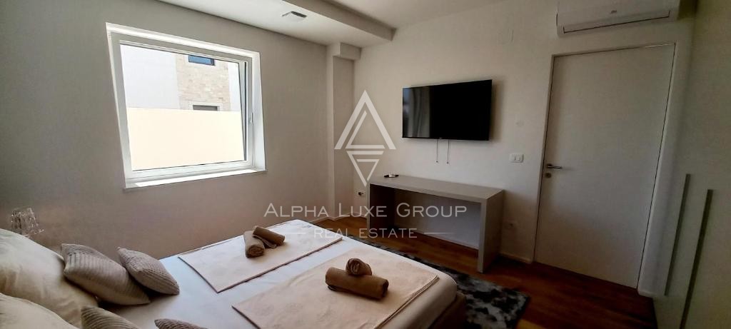 Prizemlje sadrži udoban dnevni boravak s izlazom na natkrivenu terasu, potpuno opremljenu kuhinju, jednu spavaću sobu, kupaonicu, toalet i hodnik. Na prvom katu nalaze se tri spavaće sobe, svaka s vlastitom kupaonicom, hodnik i balkon. Krovna terasa nudi zadivljujući pogled na more i okolni krajolik, idealno mjesto za opuštanje.