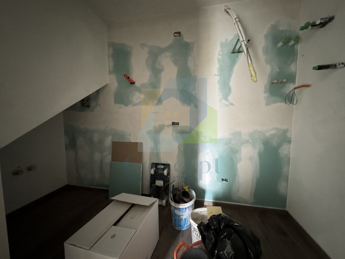 Unutarnje stubište vodi na višu etažu, gdje se nalazi još jedna prostorija pogodna za različite namjene, kao što su radna soba ili dodatna spavaća soba. Na istoj etaži smještena je i druga kupaonica, a iz prostorije se izlazi na krovnu terasu.