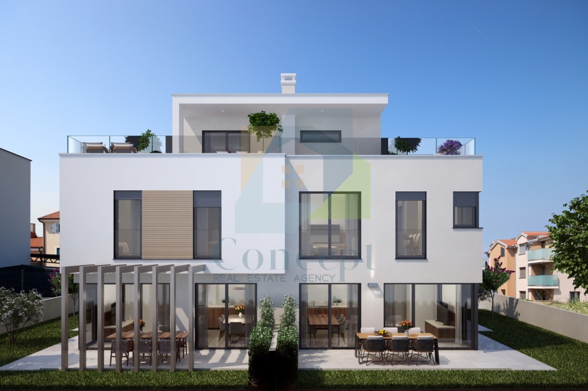 Prodaje se dvoetažni stan s krovnom terasom na odličnoj lokaciji, svega 300 metara od mora, u mirnoj okolici Umaga. Stan ukupne površine 100,91 m² smješten je u novijoj zgradi suvremenog izgleda i nudi funkcionalno uređen prostor raspoređen na dvije etaže, uz dodatnu krovnu terasu.