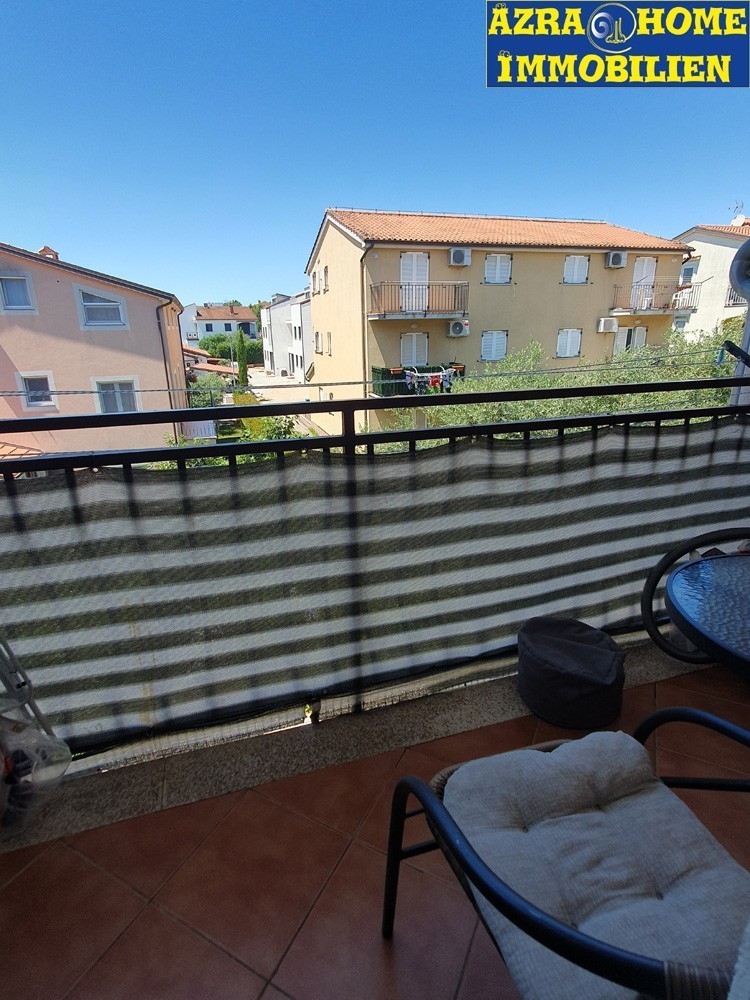 U okolici Poreča, 3km od mora, oko 1km od trgovačkih centara , nalazi se ovaj stan od 56,84 m2. Stan je smješten na 2.katu a čine ga: hodnik, dnevni boravak sa kuhinjskom nišom, dvije spavaće sobe od kojih jedna ima terasu i kupatilo.