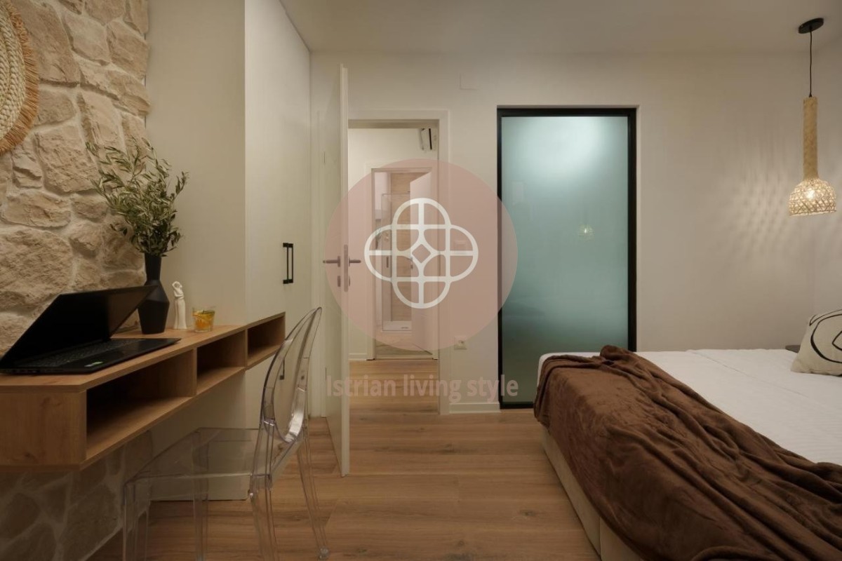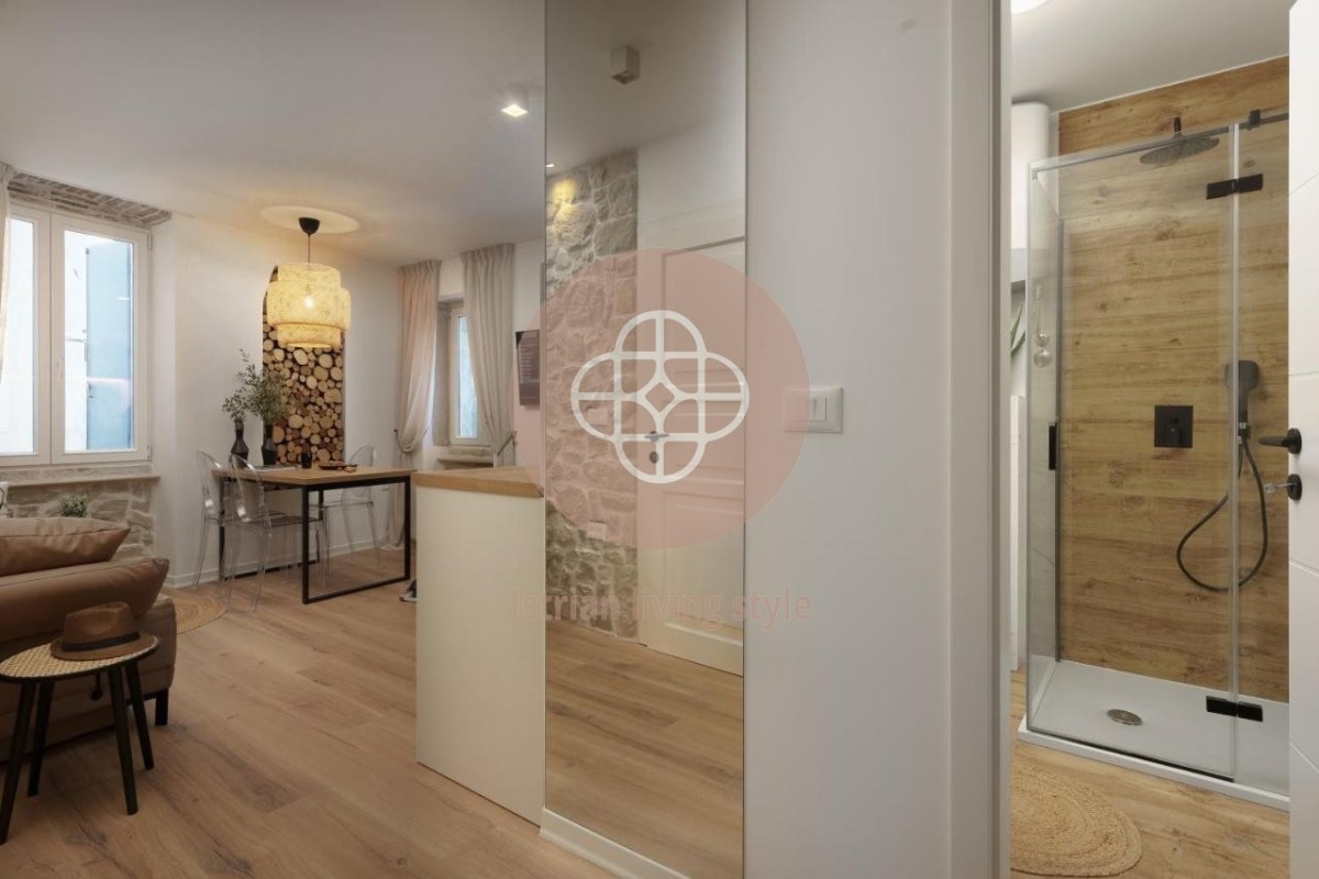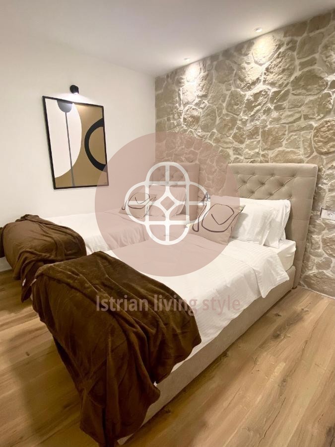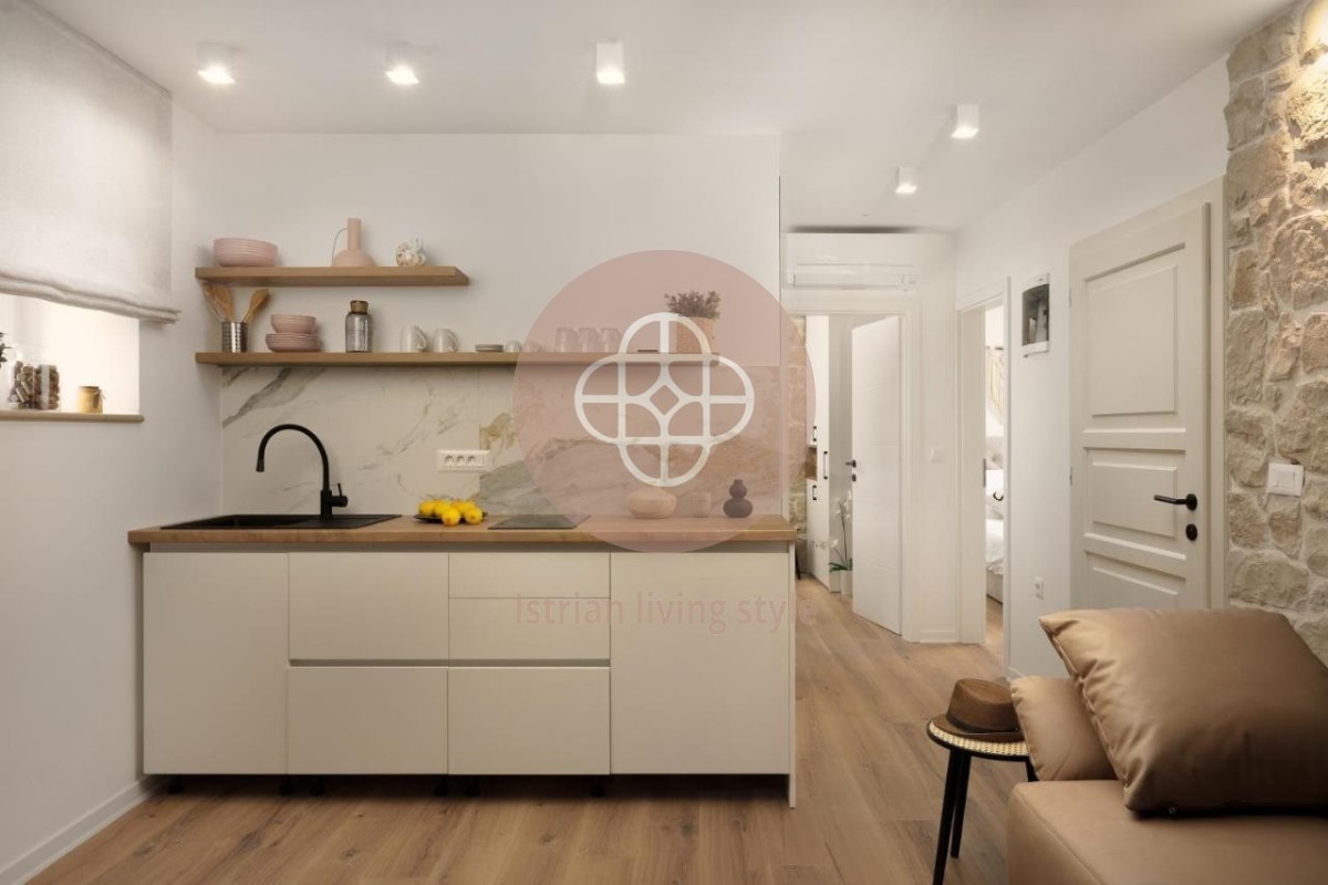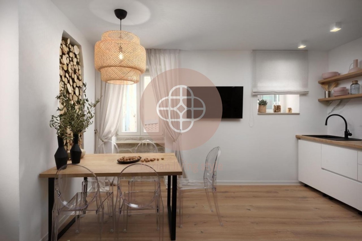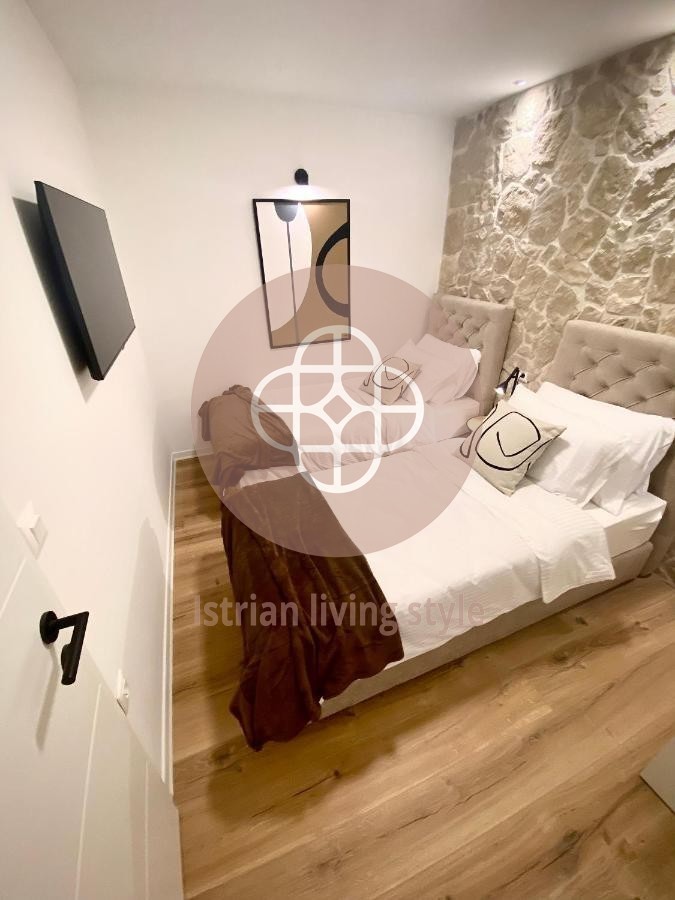 Smješten u centru Rovinja, usred slikovite, svjetski poznate stare gradske jezgre, ovaj vrhunski renoviran dvosobni stan nalazi se u malom dvorištu. Smješten na drugom katu - stubište će biti renovirano ovog ljeta - ovaj san vas poziva da se zadržite na nešto više od 50 četvornih metara. Oaza mira u srcu živahnog lučkog grada. Otvoreni dnevni boravak-blagovaonica s novom kuhinjom, udobnim kaučem, TV-om ravnog ekrana, šik blagovaonicom nudi sve što vam srce poželi uz dvije spavaće sobe i modernu kupaonicu s walk-in tušem. Ovaj vrhunski apartman je opremljen za iznajmljivanje, ali će također pružiti veliko zadovoljstvo novom vlasniku. Dragulj za svakog ljubitelja Rovinja - MUST HAVE.
