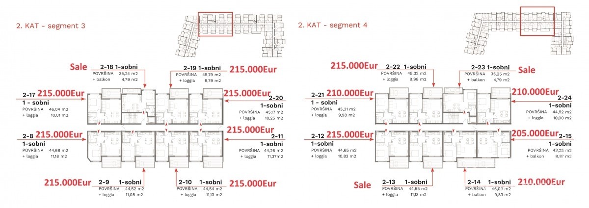 Di seguito è possibile visualizzare le immagini dell'edificio insieme alle planimetrie che evidenziano i rispettivi prezzi dei singoli appartamenti.