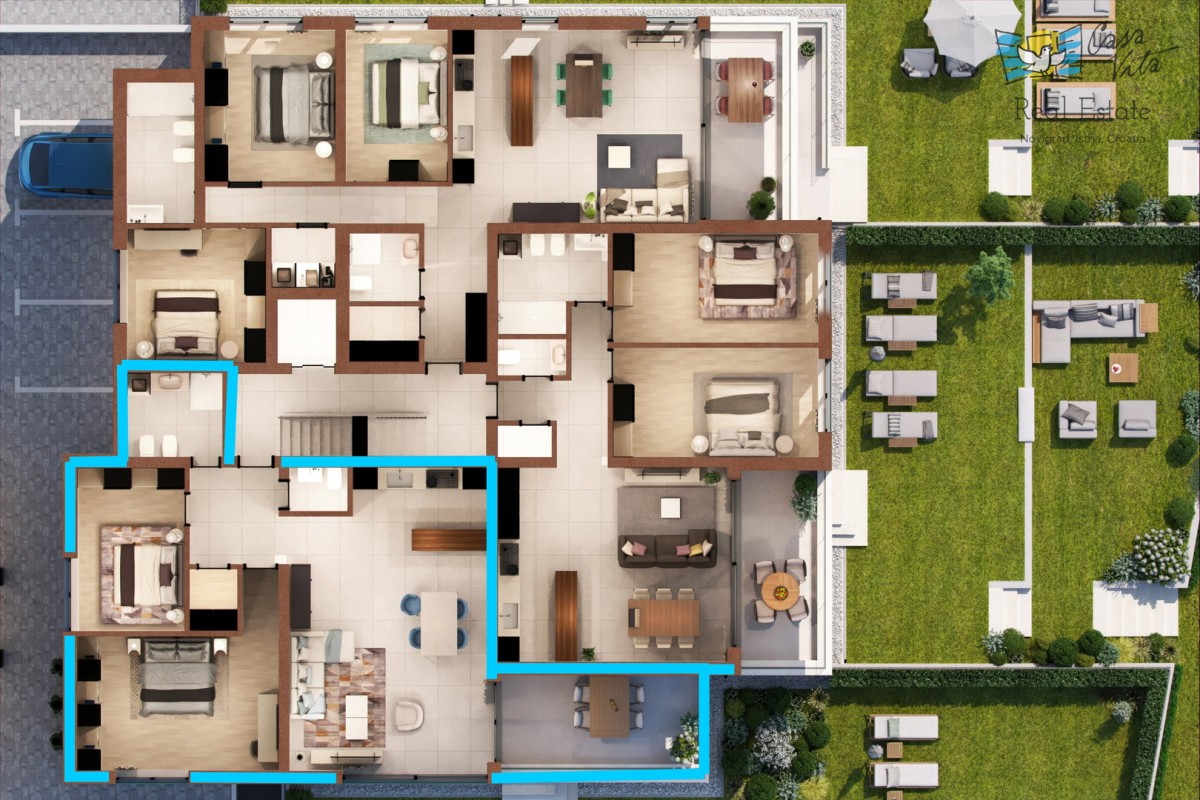 A Cittanova, a solo 1 km dal centro della città e dalle bellissime spiagge, è in costruzione un edificio residenziale con 8 appartamenti.