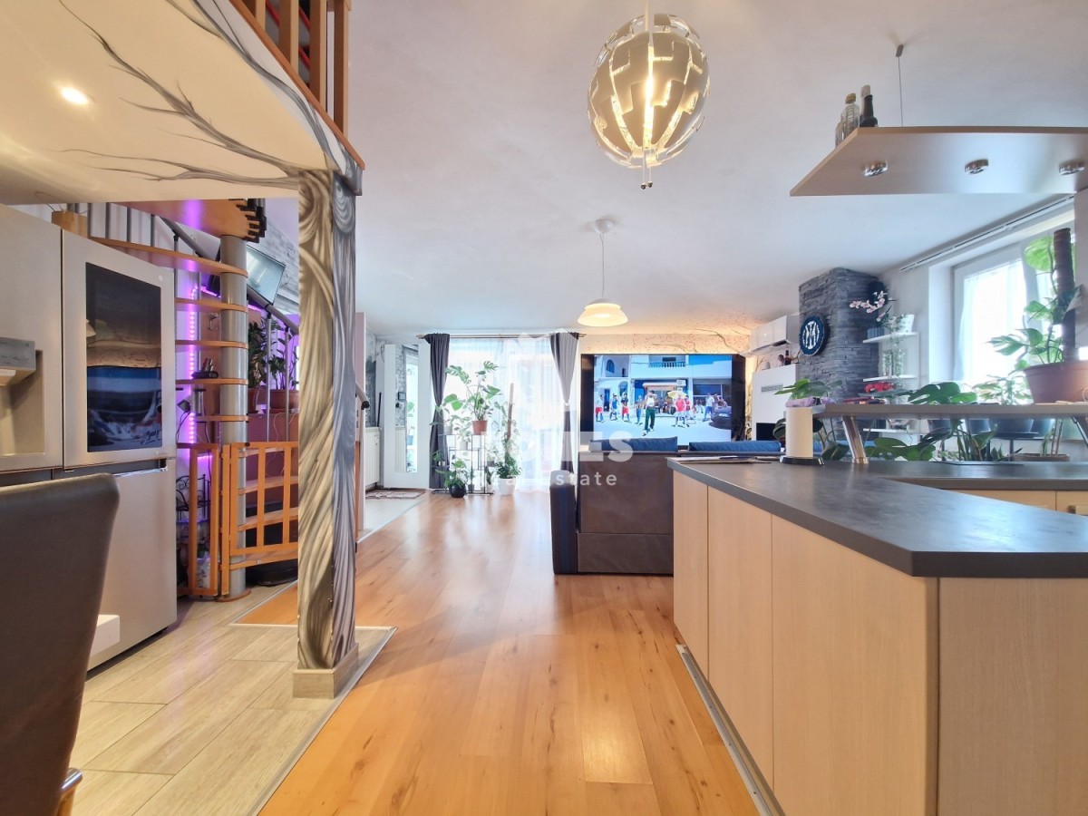 Appartamento in vendita in un'ottima posizione, a soli 100 m dal mare e dalla spiaggia a Umag - Umago. La superficie utile netta dell'appartamento è di 92 mq ed è composto da scala esterna, ingresso chiuso, soggiorno, cucina, terrazzo con vasca idromassaggio, ripostiglio, 3 camere da letto di cui una e stata convertita in una sala giochi e un bagno.