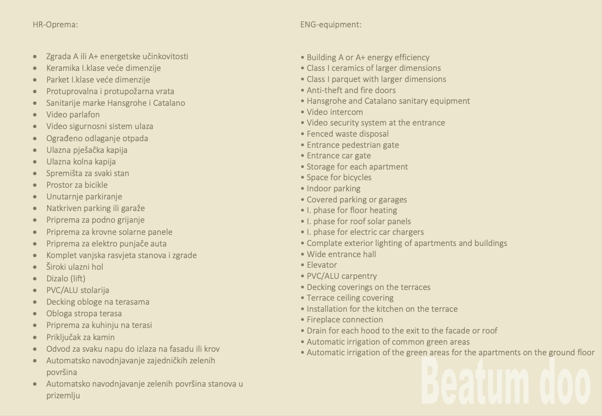 SPECIFICHE DEGLI STANDARD E DOTAZIONI DEGLI APPARTAMENTI