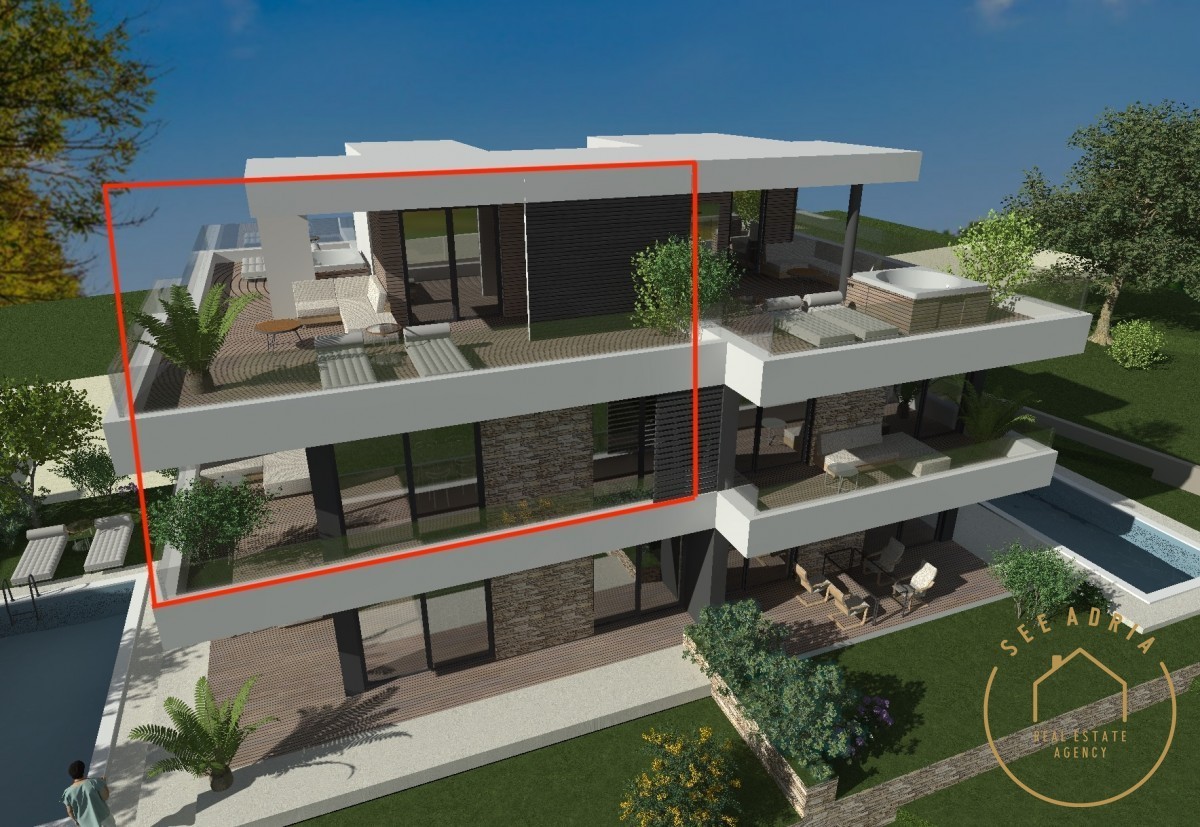 uscite su una terrazza coperta. Dall'appartamento, le scale conducono alla terrazza sul tetto da cui