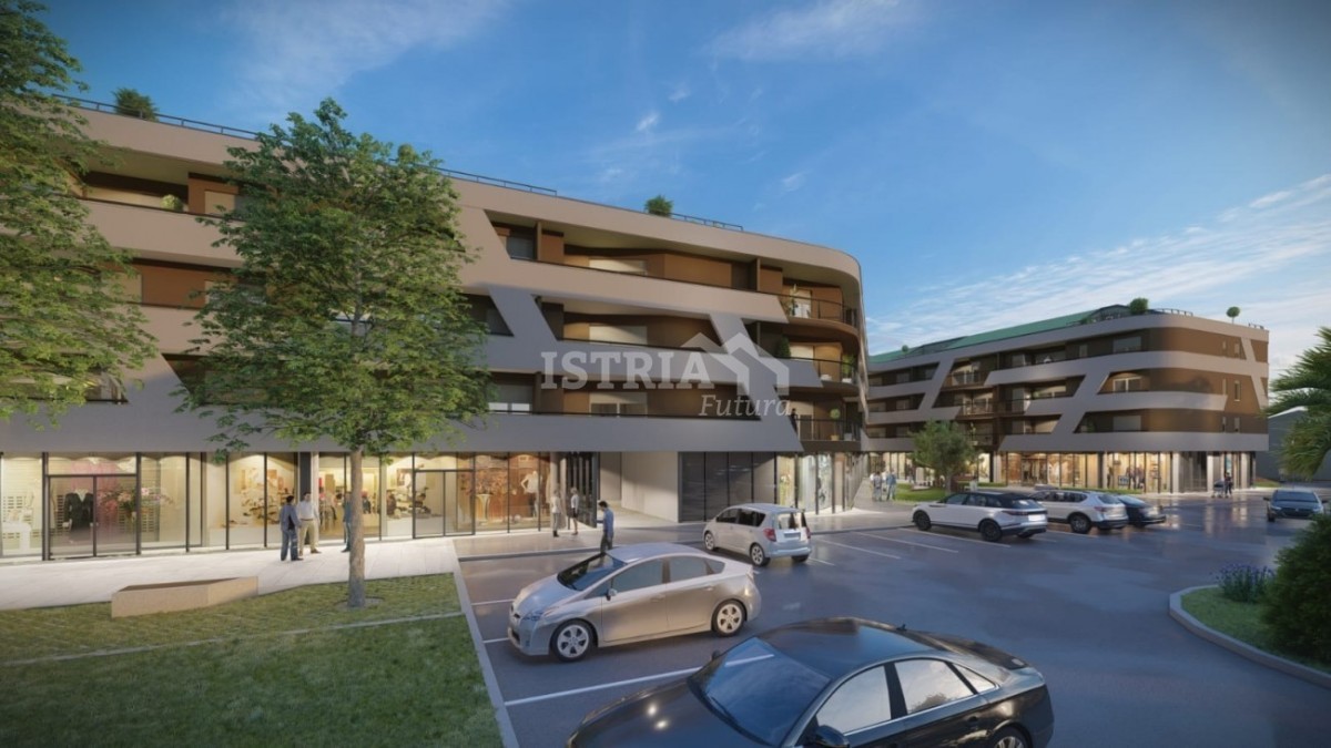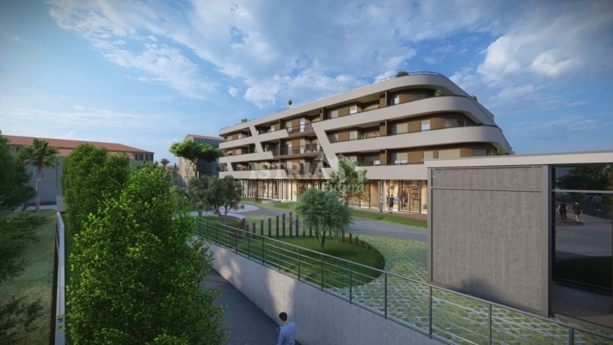 Appartamento in vendita in un lussuoso nuovo edificio residenziale e commerciale nel centro di Parenzo, perfetto per tutti gli amanti del centro città, della vicinanza ai servizi e della funzionalità. L'edificio è dotato di un garage sotterraneo e di un ascensore che conduce a ogni piano, garantendo la massima comodità.