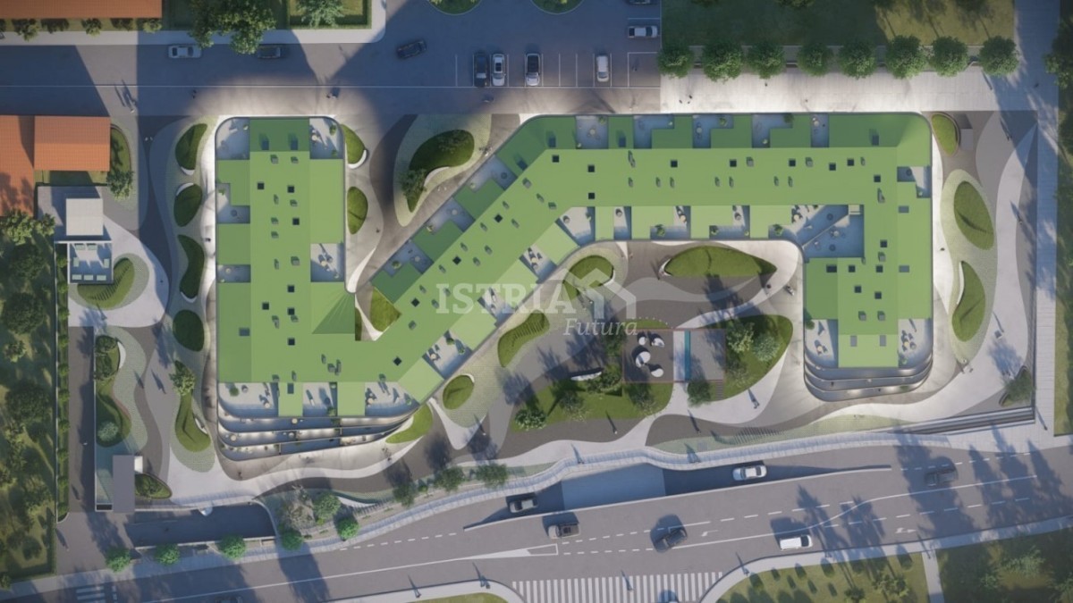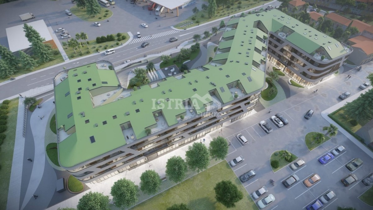 Appartamento in vendita in un lussuoso nuovo edificio residenziale e commerciale nel centro di Parenzo, perfetto per tutti gli amanti del centro città, della vicinanza ai servizi e della funzionalità. L'edificio è dotato di un garage sotterraneo e di un ascensore che conduce a ogni piano, garantendo la massima comodità.