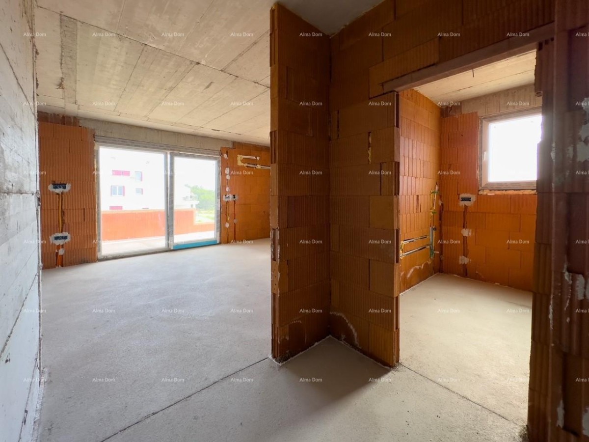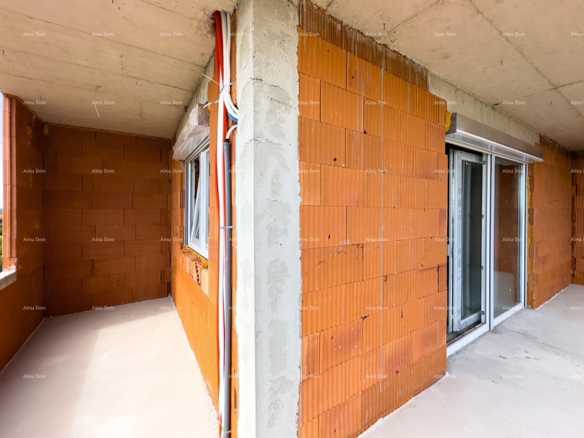 L'appartamento è composto da due camere da letto, di cui una con il proprio bagno, un ripostiglio, un altro bagno, una cucina, una sala da pranzo e un soggiorno che si apre su un ampio terrazzo coperto (20 mq).
