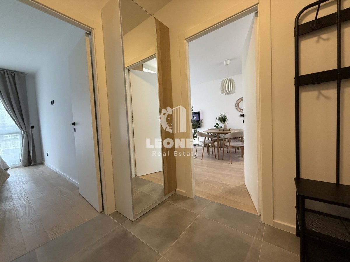 Un appartamento modernamente arredato al piano terra di un edificio di nuova costruzione a Umago è in vendita. L'appartamento è completamente arredato con mobili ed elettrodomestici di alta qualità. Il prezzo dell'appartamento include anche un ampio parcheggio coperto situato proprio accanto alla terrazza e al giardino dell'appartamento, nonché un ripostiglio situato nelle immediate vicinanze dell'appartamento.
