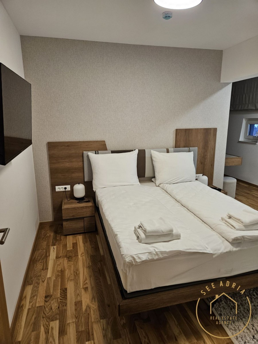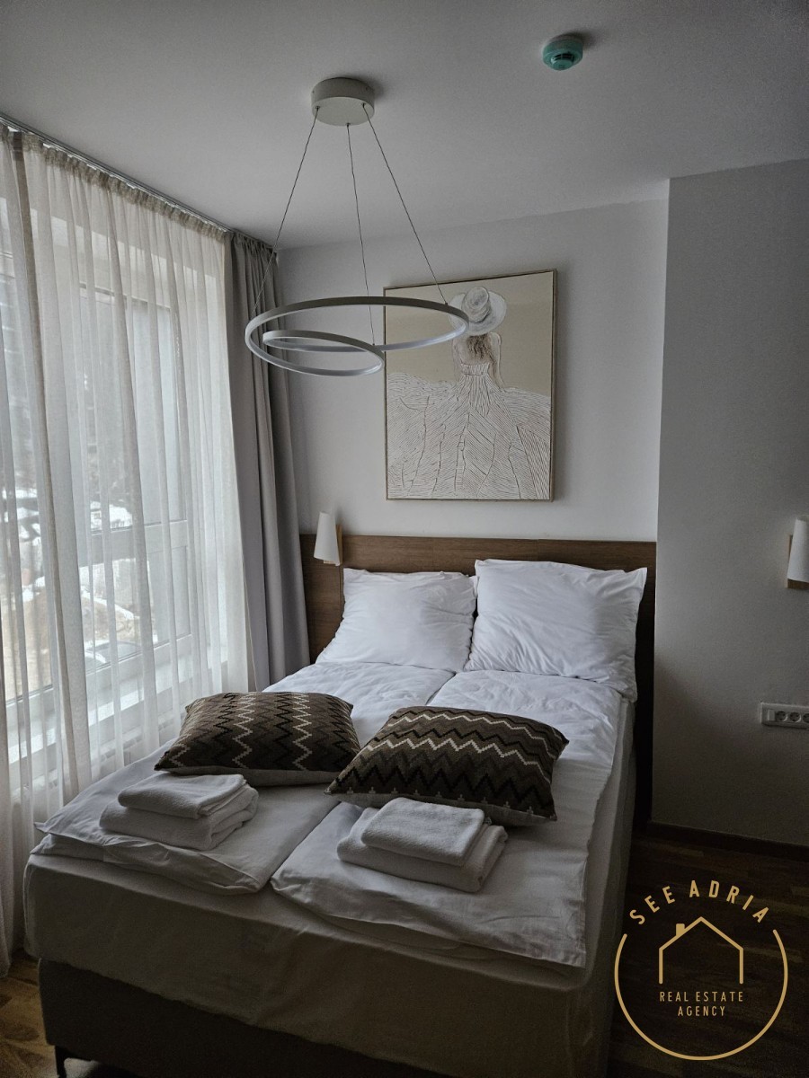 L'appartamento ha una superficie di 75,20 m² ed è composto da ingresso, cucina con soggiorno e sala da pranzo, 2 camere da letto, una delle quali con cabina armadio, e 2 bagni. L'appartamento è completamente attrezzato per 6 persone, con tutti gli elettrodomestici e l'inventario necessari, e viene venduto nello stato in cui si trova. Dispone di un posto auto in garage e di un deposito sci. Questo complesso si trova a 1560 m di altitudine, con vista sul paesaggio montano, nelle immediate vicinanze della funivia di Poljice e a 28 km da Sarajevo.