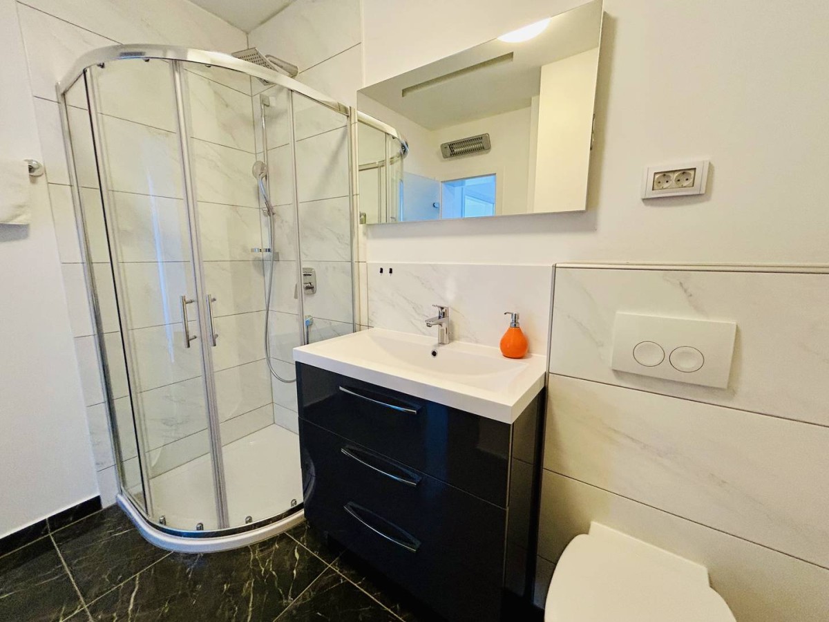 La superficie netta utile dell’appartamento è di 95,90 m2. L’orientamento sud-ovest garantisce un’abbondanza di luce naturale per tutto il giorno, evidenziando un’atmosfera molto luminosa negli ambienti. Dal soggiorno si accede al balcone spazioso, dal quale si gode di una bella vista sul mare e sulla natura circostante.