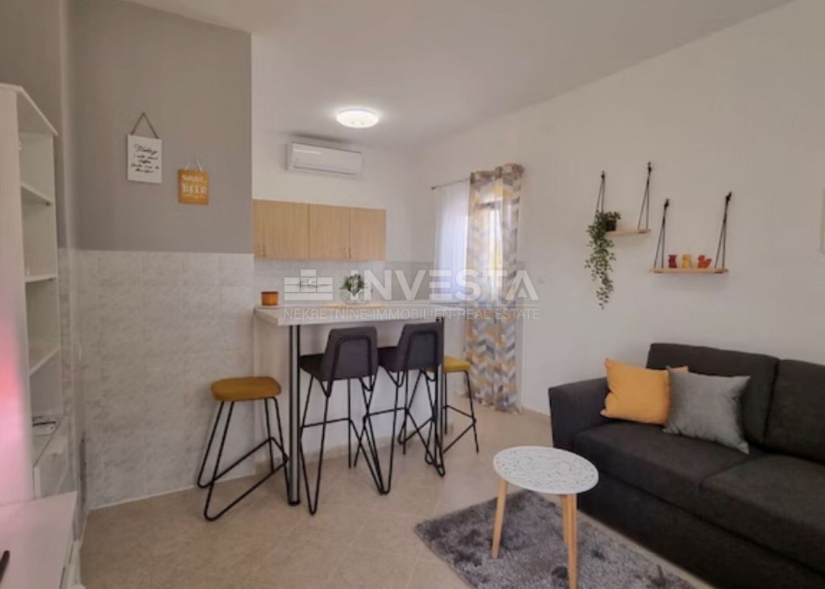 Al piano terra si trova un appartamento più piccolo di 38 m² composto da cucina con zona pranzo, una camera da letto e un bagno. L’appartamento ha accesso a una terrazza coperta, ideale per trascorrere del tempo all’aperto.