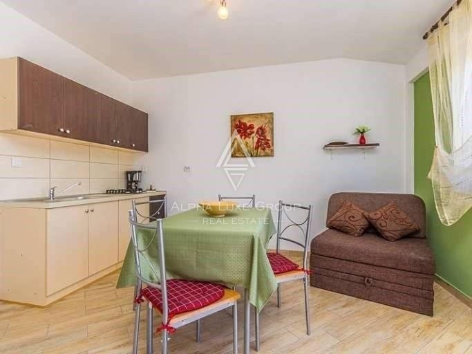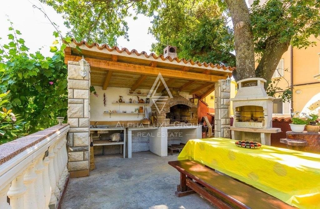 La casa si trova a soli 200 metri dal mare. Comprende cinque appartamenti di 600 m2, un cortile paesaggistico di 1.100 m2, uffici di 100 m2, un garage di 50 m2, un seminterrato di 30 m2 e un parcheggio di 600 m2 (7+ auto).