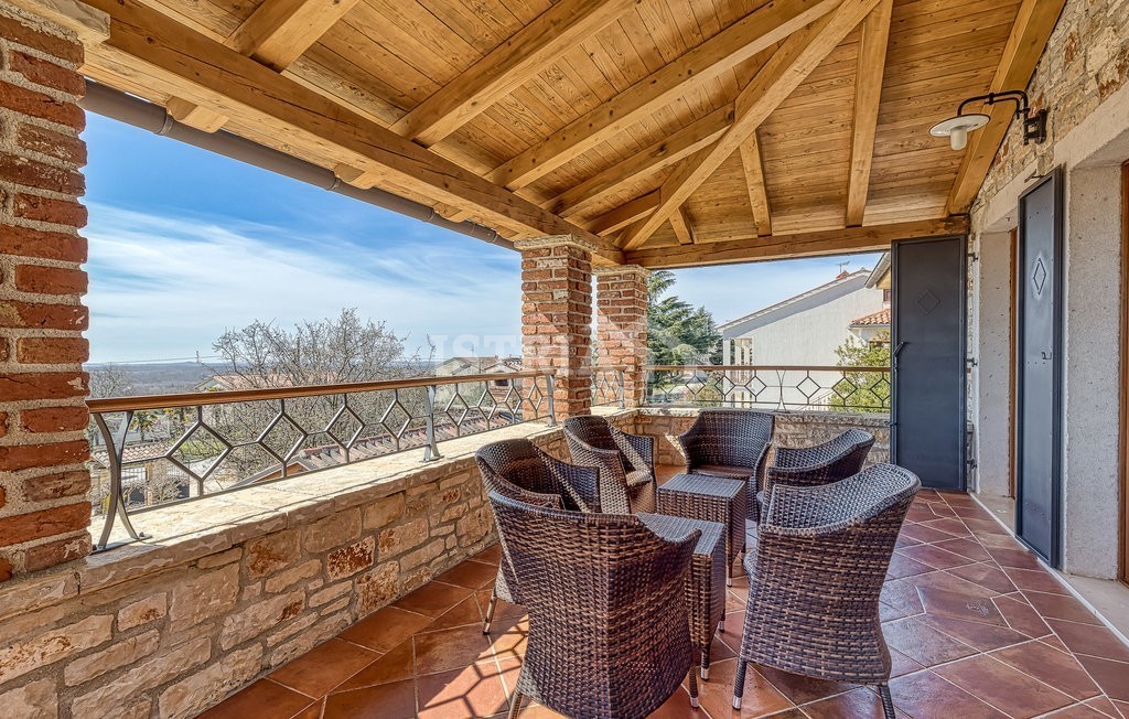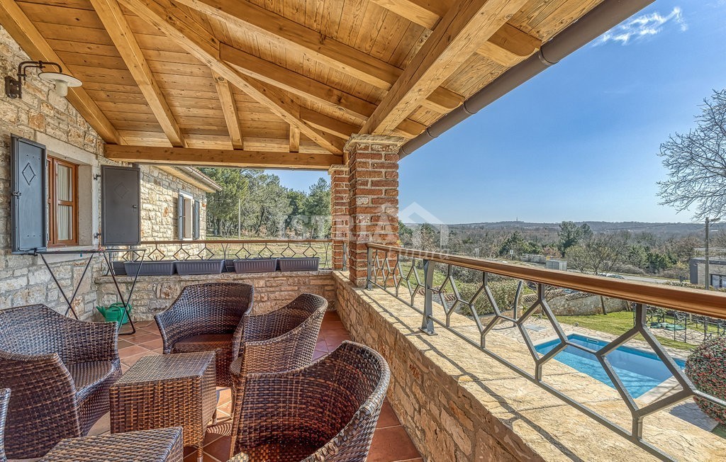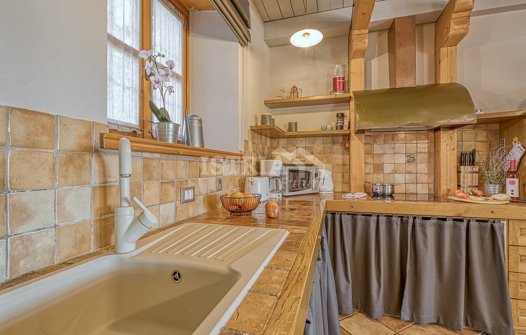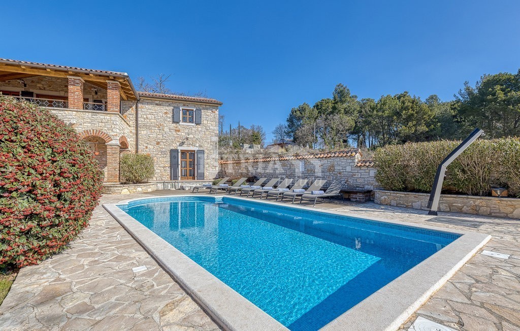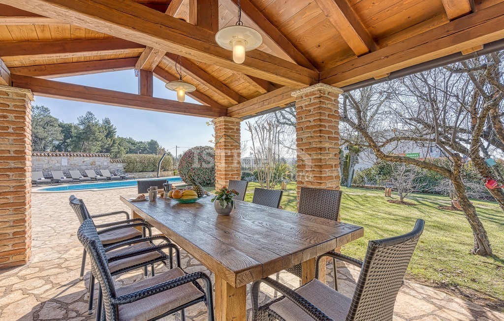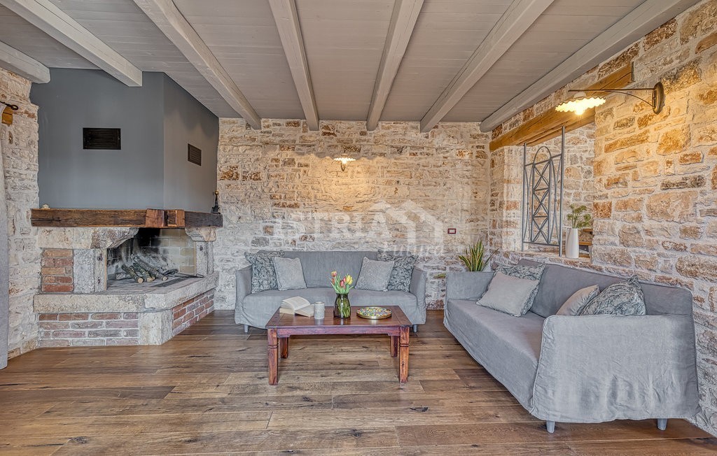 In vendita una splendida villa in pietra di 200 m² distribuiti tra piano terra e primo piano, situata su un terreno recintato e curato di 1.030 m², a 13 km dal centro di Parenzo e dal mare.
