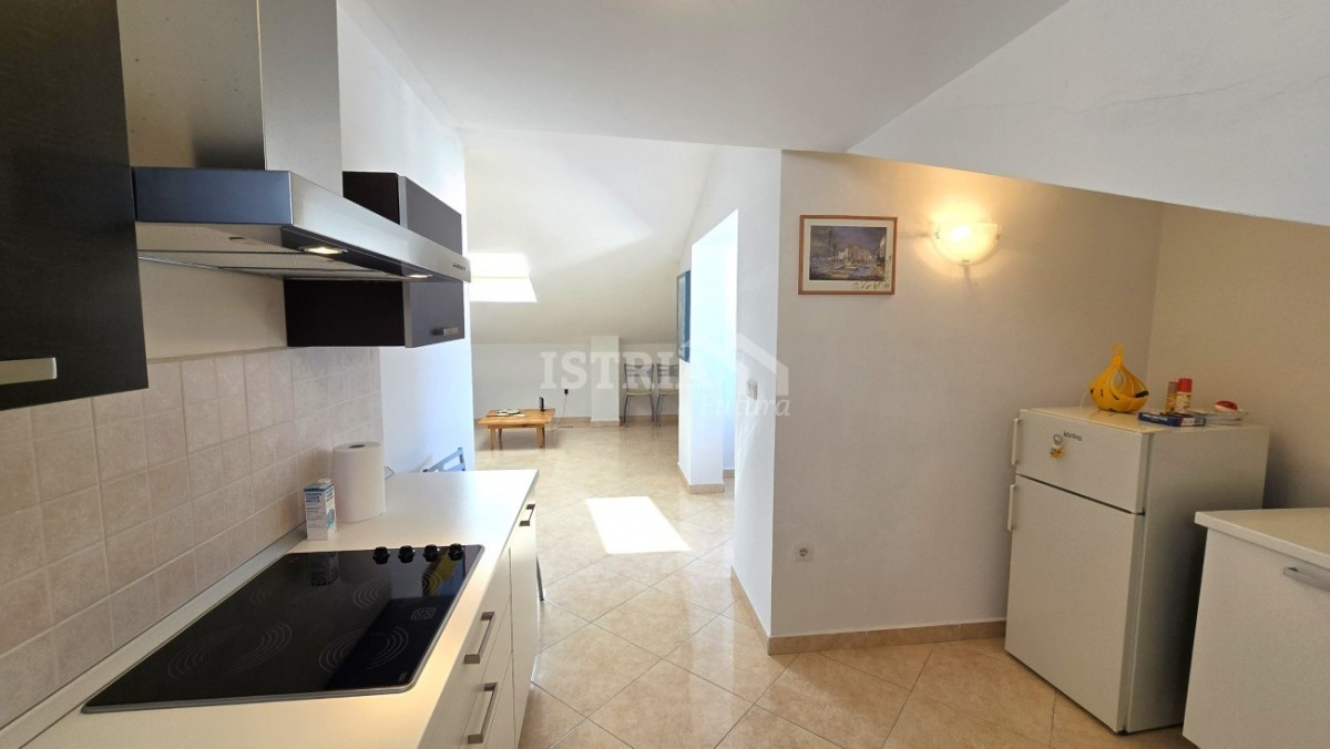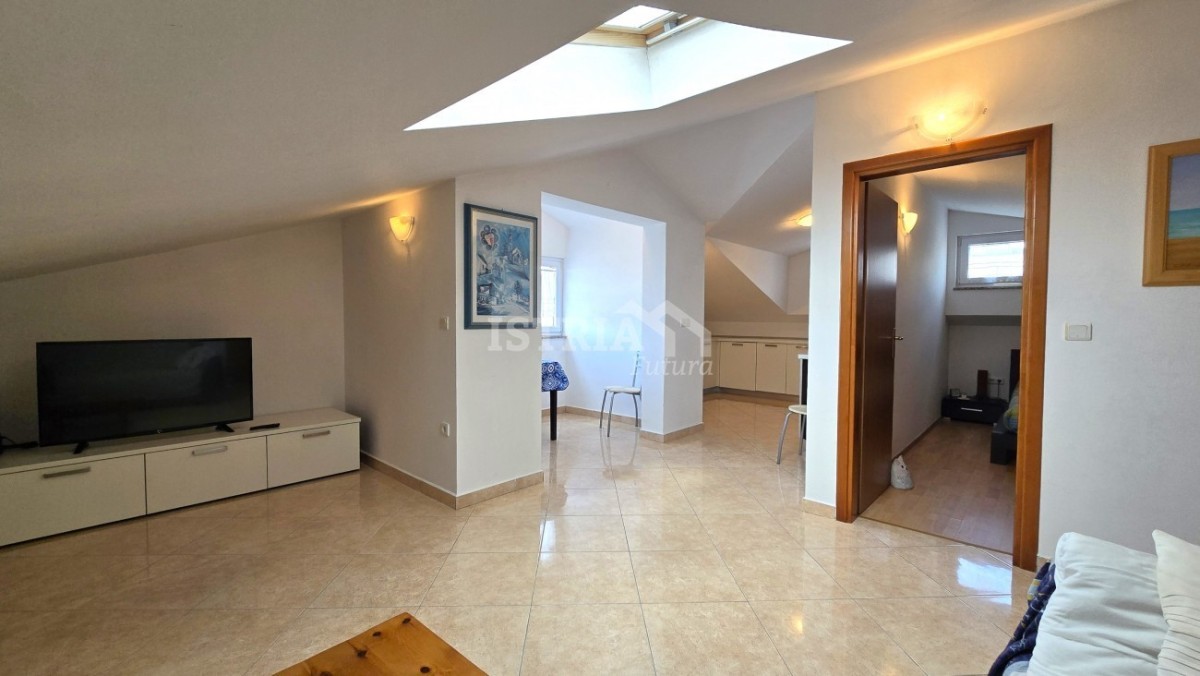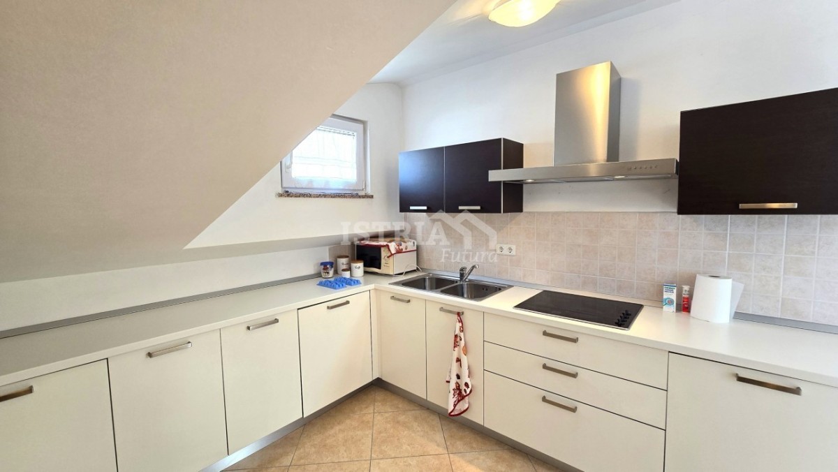 In vendita un bellissimo appartamento di 56 m² con vista mare, situato al 2° piano di un piccolo condominio residenziale con soli 6 appartamenti, a soli 800 m dal mare e a 3 km dal centro di Parenzo.
