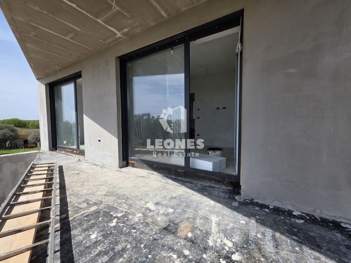 Casa bifamiliare in vendita nei dintorni di Umag - Umago. La superficie utile netta dell'abitazione è di 87 m², mentre il giardino si estende per circa 150 m². Al piano terra si trovano un bagno di servizio, una cucina abitabile e un soggiorno con accesso a una terrazza coperta. Al primo piano ci sono 2 camere da letto e un bagno.